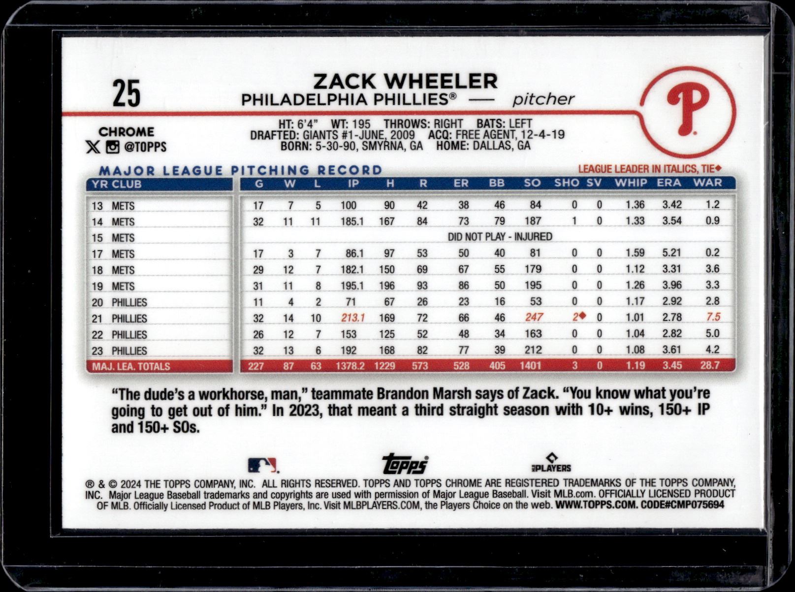 Zack Wheeler Prism Refractor 2024 Topps Chrome #25