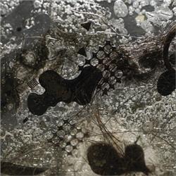 Zahara Schatz chandelier USA, c. 1952 Plexiglas, copper, brass 40"w x 38"d x 20"h This unique lamp comes from a small series of lighting that Zahara Schatz produced by hand in the early 1950s. The Plexiglas is manipulated while still hot, "into suggestive and unconfined shapes" and imbedded with various elements of wire, mesh and metal shavings that create an abstract composition. Schatz then intertwines the plastic with brass tubing, resulting in a jeweled effect. The chandelier becomes a unique sculptural form and an excellent example of American biomorphic design because the elements are "set in three or four positions, and [it] makes good sense when seen from every angle." Literature: Craft Horizons, 1952, pg. 11