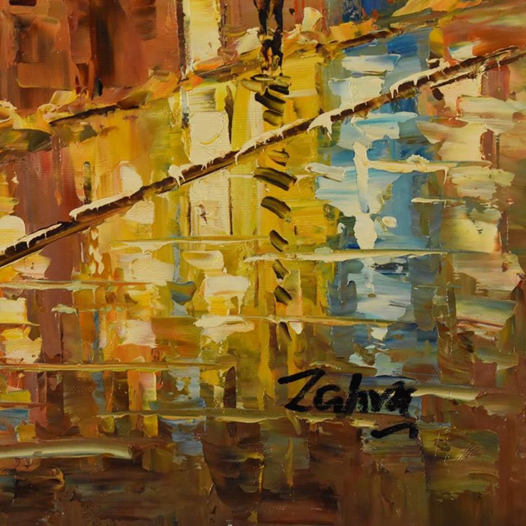 This is an original oil painting on canvas by Zahra, hand signed by the artist. Includes Letter of Authenticity. Measures approx. 24" x 24" (image).