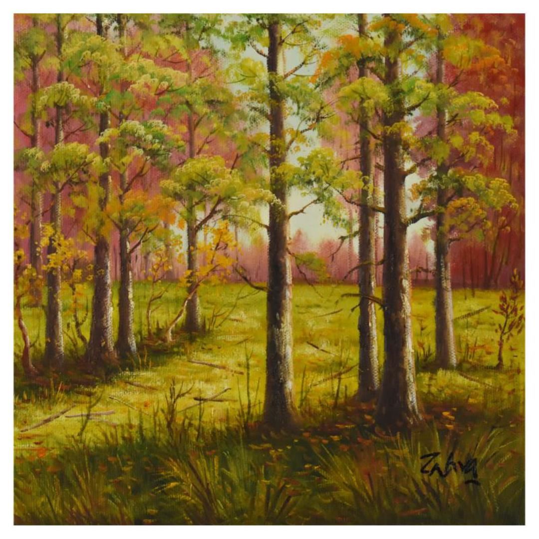 This is an original oil painting on canvas by Zahra, hand signed by the artist. Includes Letter of Authenticity. Measures approx. 24" x 24" (image).