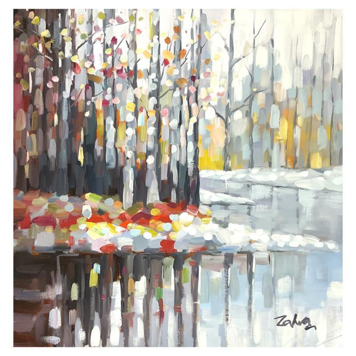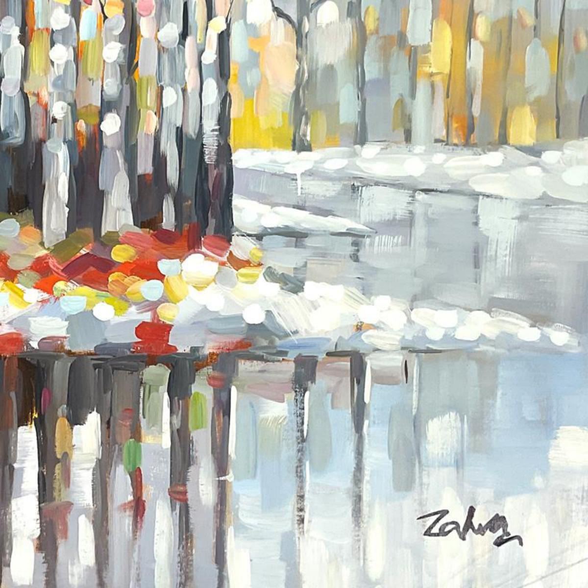 This is an original oil painting on canvas by Zahra, hand signed by the artist. Includes Letter of Authenticity. Measures approx. 30" x 32" (image). There are diagonal creases on the bottom-right corner that may be concealed when the piece is framed. Reference #: 257922
