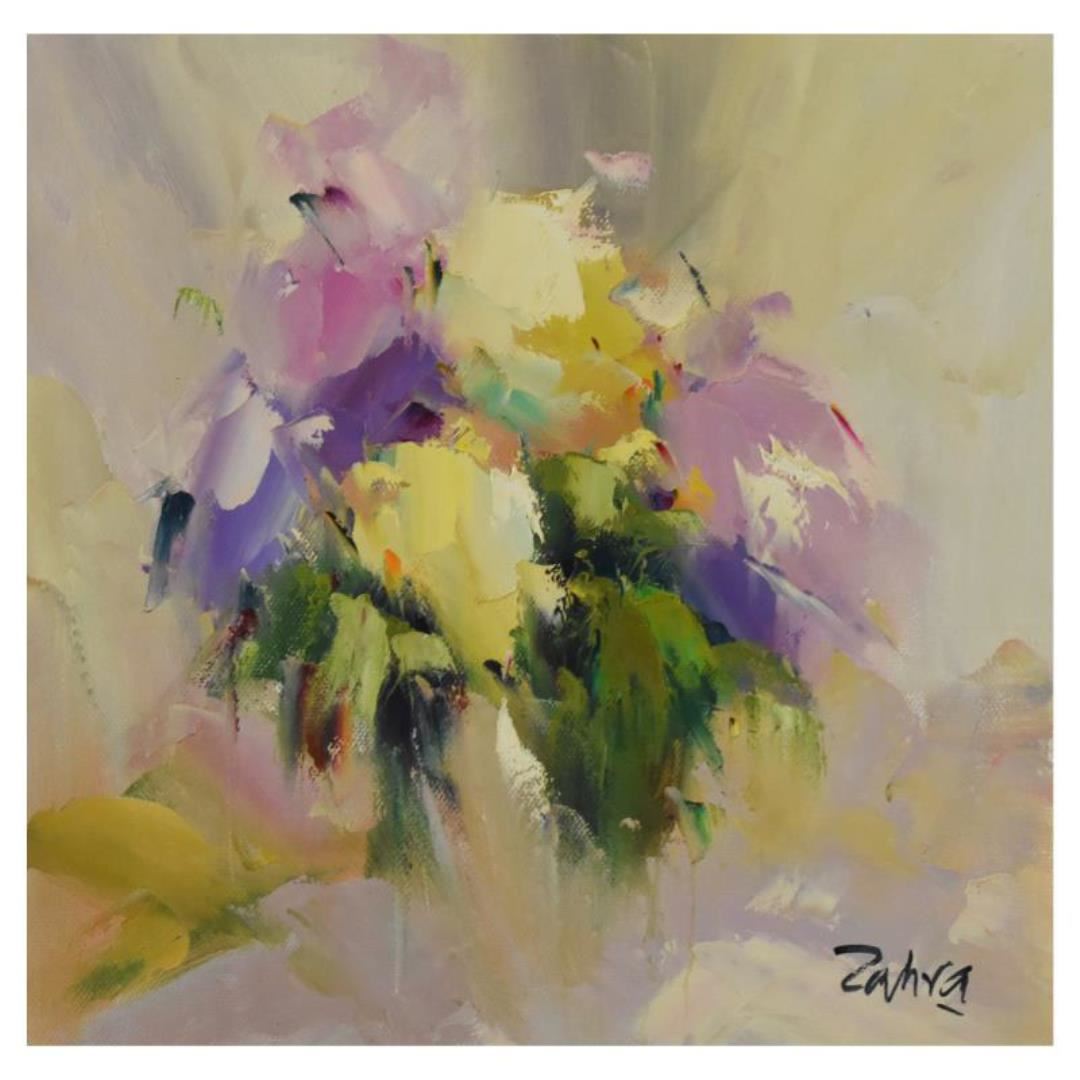 This is an original oil painting on canvas by Zahra, hand signed by the artist. Includes Letter of Authenticity. Measures approx. 24" x 24" (image).