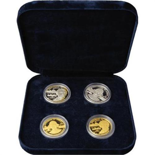 <B>Democratic Republic of Congo Proof Set 1999,</B></I> Explorers of Africa set in the original plush case with 4 COA's, including two silver 10 Francs honoring Livingston and Stanley, KM20 and 21, and two gold 100 Francs with similar designs, KM177 and 178. Each gold coin weighs one ounce pure.<BR><BR><b>Shipping:</b> Coins & Currency (<a target="_blank" href="http://www.heritageauctions.com/common/shipping.php">view shipping information</a>)