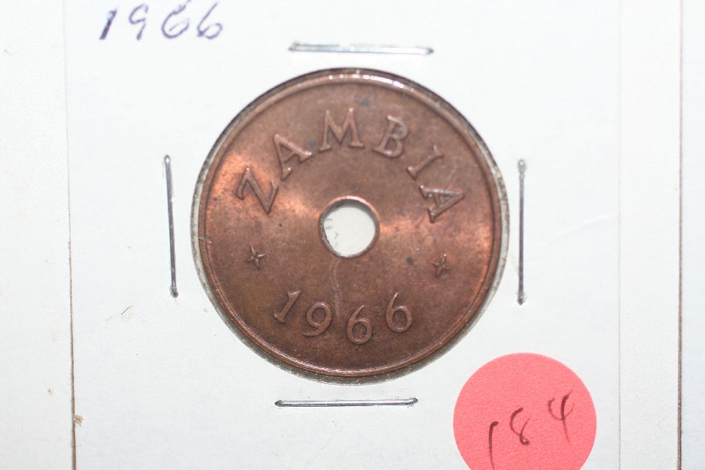This lot is a 1966 zambia 1 penny coin