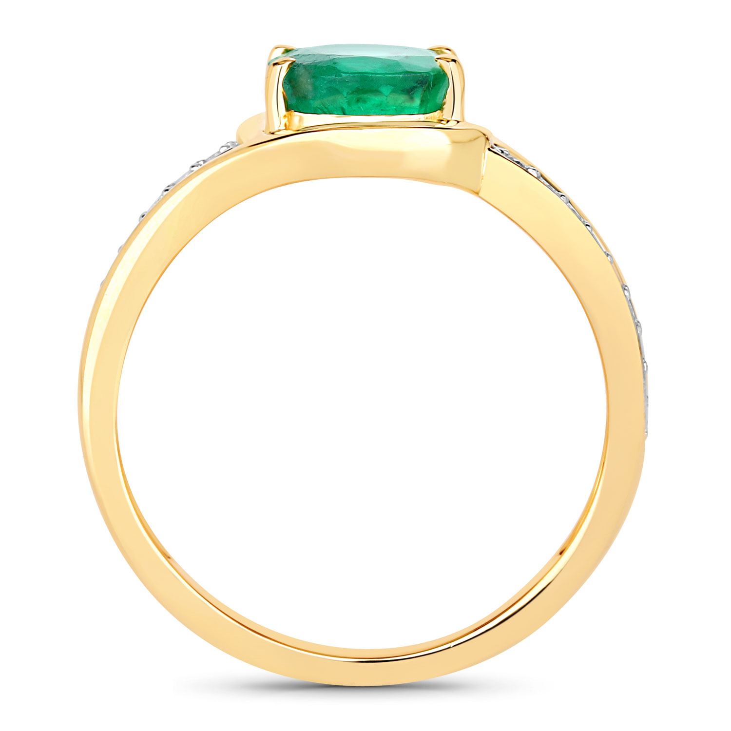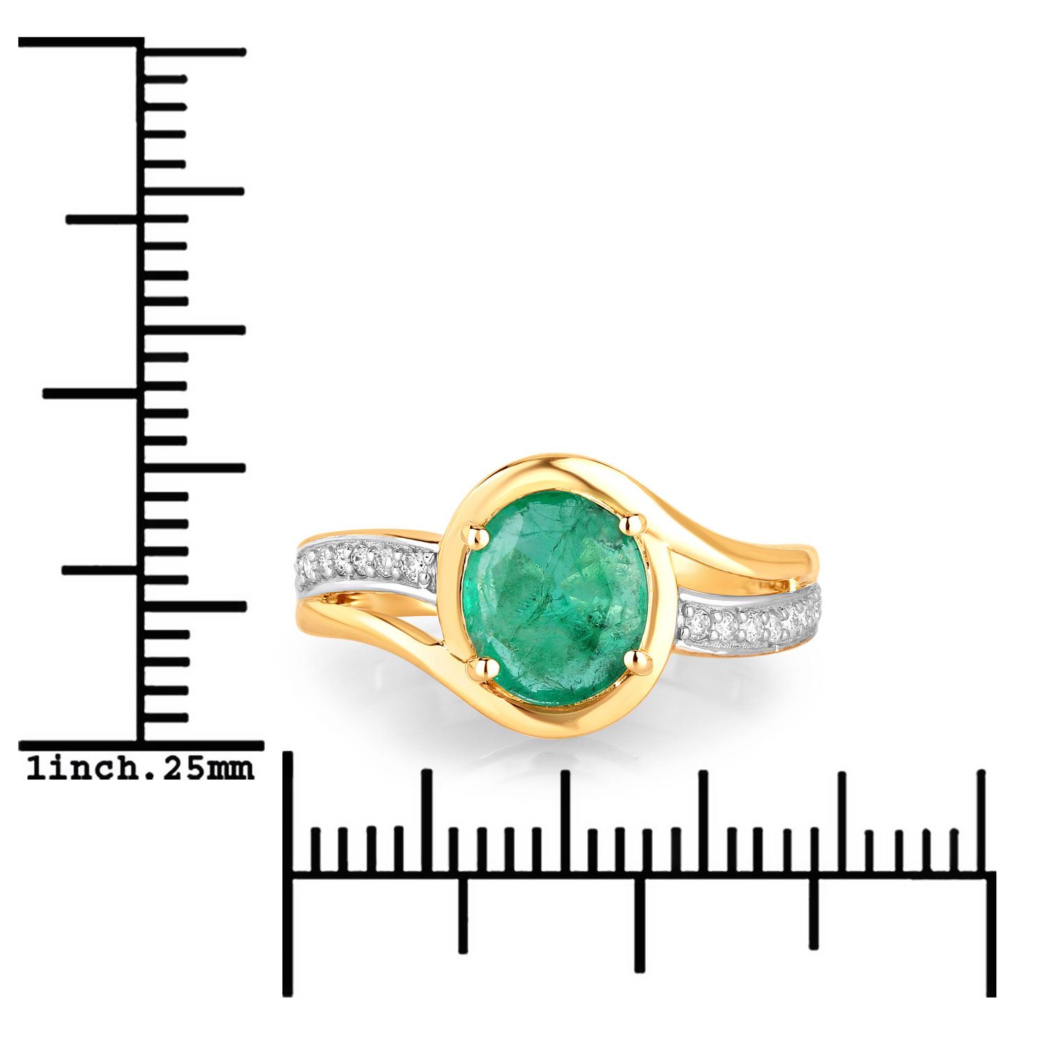 In this 14 karat yellow gold ring, the bypass swirls seem to embrace the 1.47 carat, oval-cut and prong-set, genuine emerald, while adding the zest of .14 carats total weight round, brilliant-cut, H-I color, I1 clarity diamonds down the shoulders.& nbsp; The ring is excellent for daily wear with its low profile and four prongs. There is a semi-ribbed gallery for support and the swirled shoulders taper to an approximate 2.25mm shank. See sizing options below. Admin:Q5743/24-wgb