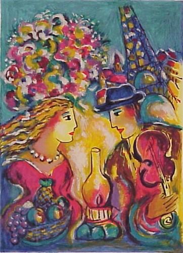 PARIS SERENADE, color screenprint, signed in pencil, from the numbered edition 350, image 18 ½ x 13 ½”, full margins, framed with glass. $100/200