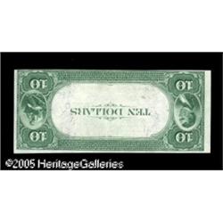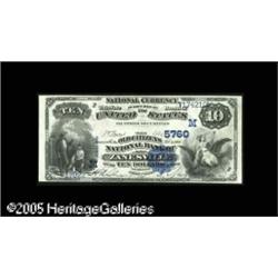 <B>Zanesville, OH</B></I> - $10 1882 Value Back Fr. 577 Inverted Reverse <B>The Old Citizens NB</B></I> Ch. # (M)5760 <B>Choice Crisp Uncirculated.</B></I> A rare and lovely inverted reverse example which may well be the highest grade inverted reverse specimen recorded. It's from the same sheet that the double denominations come from on this bank, but it's actually quite a bit more scarce as a same denomination invert, as the new Kelly census shows just two other non-double denomination large National inverts reported to date. Lot:15026