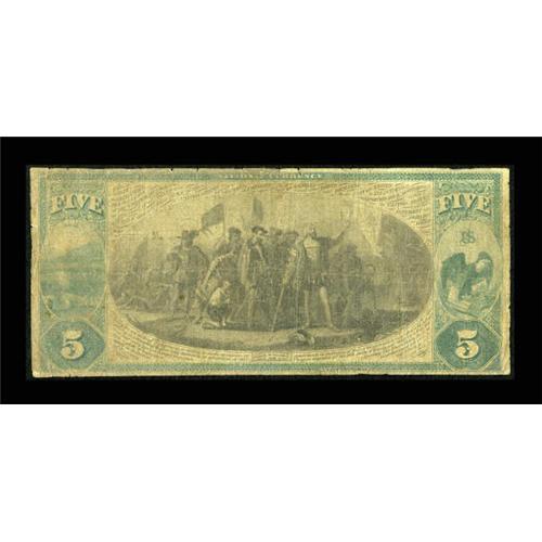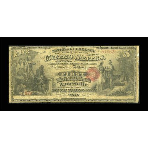 <B>Zanesville, OH</B></I> - $5 Original Fr. 394 <B>The First NB</B></I> Ch. # 164<BR> This piece from Muskingum County is the earliest known issue reported from this bank chartered in 1863. The bank managed to release Original Series and Series 1875 notes in fairly sizeable quantities, though this piece is the only known note from either issue. The paper boasts solid printed details, though there are some pinholes and edge splits to contend with. <B>Very Good.</B></I><BR><BR><b>Shipping:</b> Coins & Currency (<a target="_blank" href="http://www.heritageauctions.com/common/shipping.php">view shipping information</a>)