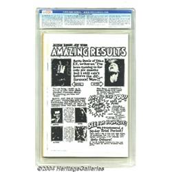 <B>Zap Comix #1 First Printing - Plymell Edition (Apex Novelties, 1967) CGC VF+ 8.5 Off-white pages.</B></I> This book is to Undergrounds what <B>Action Comics</B></I> #1 is to superhero comics! The title was also Robert Crumb's first published work. This book is referred to as a "Plymell" edition due to the printer's name being printed on the back page. Printing numbers vary depending on who is telling the story, but suffice to say no more than 5,000 copies were completed. The true number is likely closer to 1,500. The issues were printed and folded by hand, and then sold out of a baby carriage on the streets of Berkeley and San Francisco, so finding copies this nice can be quite a challenge! With sales records being broken on a regular basis for this book, it's a safe bet to say this one has real potential. Jerry Weist listed the first printing of <B>Zap</B></I> #1 in his 2000 <B>Comic Art Price Guide</B></I> as having a value between $750 (FN) and $1,500 (NM). <BR><BR><B>Important notice:</B> Heritage usually auctions material at the rate of 200-250 lots per hour. On some occasions eBay Live bid software or the Internet may not be able to keep up with the pace of the auction. We recommend placing a realistic absentee bid now as insurance to avoid disappointment. Occasionally the auctioneer may eliminate or reject an eBay Live bid, and the auctioneer may also reopen a lot after the close of the eBay live bidding (usually because we missed an audience bid), and may reject your bid even if it shows you as the winning bidder. By bidding via eBay Live, you agree that Heritage may award the lot to another bidder at its sole discretion under the circumstances described above or any other reasonable circumstances. Since eBay bids are not shown to us until we open the lot on the floor, we treat those bids just like floor bids. In most cases the floor responds before the eBay bid is presented to us, due to Internet lag time, so for consistency we have made it a policy that floor bids are always considered first over tie eBay live bids. Also please note that all Heritage lots purchased through eBay Live carry a 20% Buyer's Premium. Please make sure you read the Terms and Conditions before you bid.