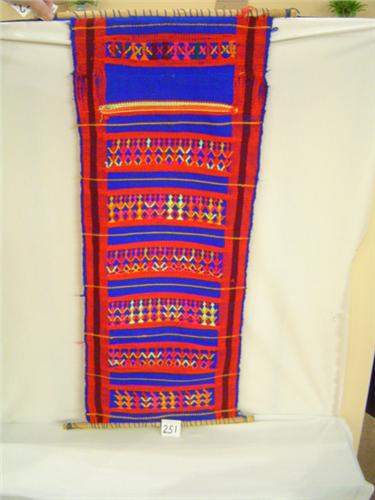 This hand woven Zapatec Weaving was collected in Oaxaca, Mexico in the 1970's. The 15" X 37.5" brightly-colored wool weaving, is attached to sticks, top & bottom, and is in excellent condition.