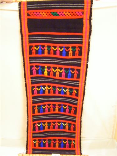 This hand woven Zapatec Weaving was collected in Oaxaca, Mexico in the 1970's. The 15.5" X 40.5" brightly-colored wool weaving, is attached to sticks, top & bottom, and is in excellent condition.