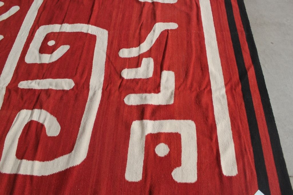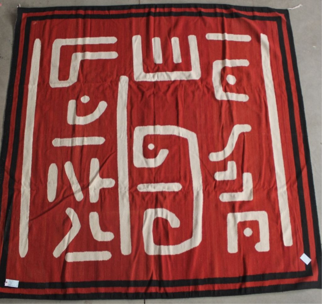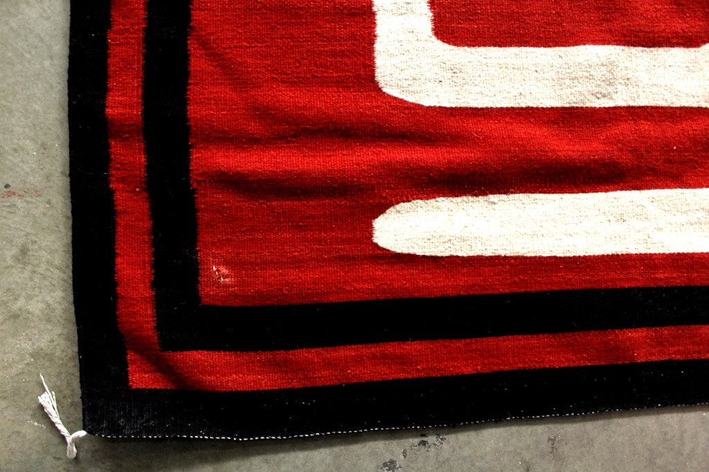 This lot features a Zapotec Chiefs blanket. This is made by the Zapotec Indians in in Oaxaca, Mexico. The Zapotec are significant because 400 years ago the Spanish missionaries taught the Navajo and Zapotechow to weave, these practices are still mastered today in both Zapatec and Navajo Tribes. This rug measures 10' x 10'.