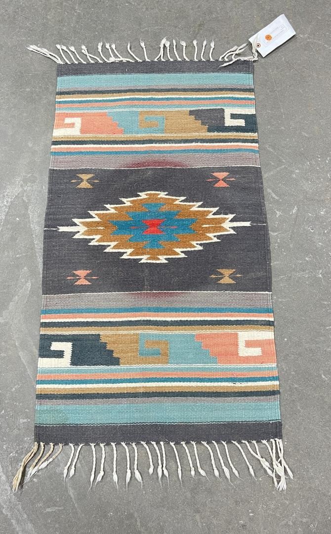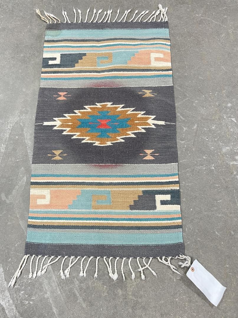 Made by the Zapotec of Mexico. 21.5" by 44" including fringe.