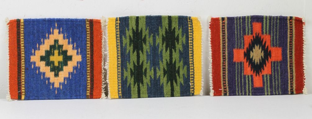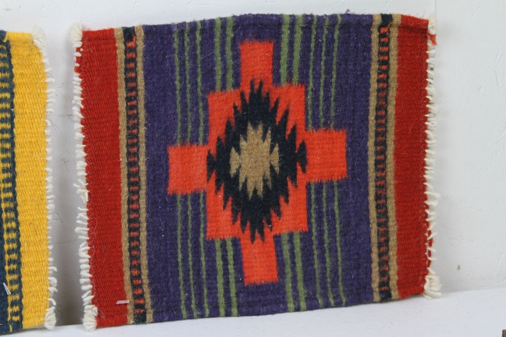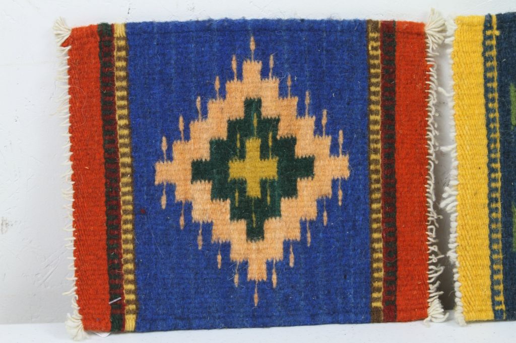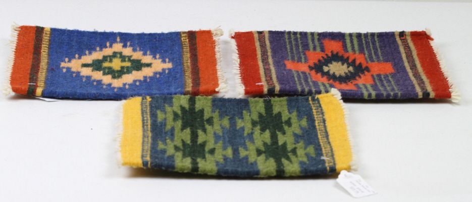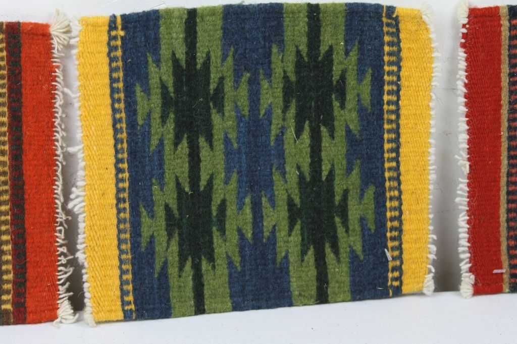 Zapotec Navajo Runners These are made by he Zapotec Indians in in Oaxaca, Mexico. The Zapotec are significant because 400 years ago the Spanish missionaries taught the Navajo and Zapotec how to weave, these practices are still mastered today in both Zapatec and Navajo Tribes. This is a Navajo Style Runner with 100% Wool and the Size of each is 9"x10" (three total one money).