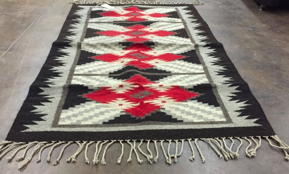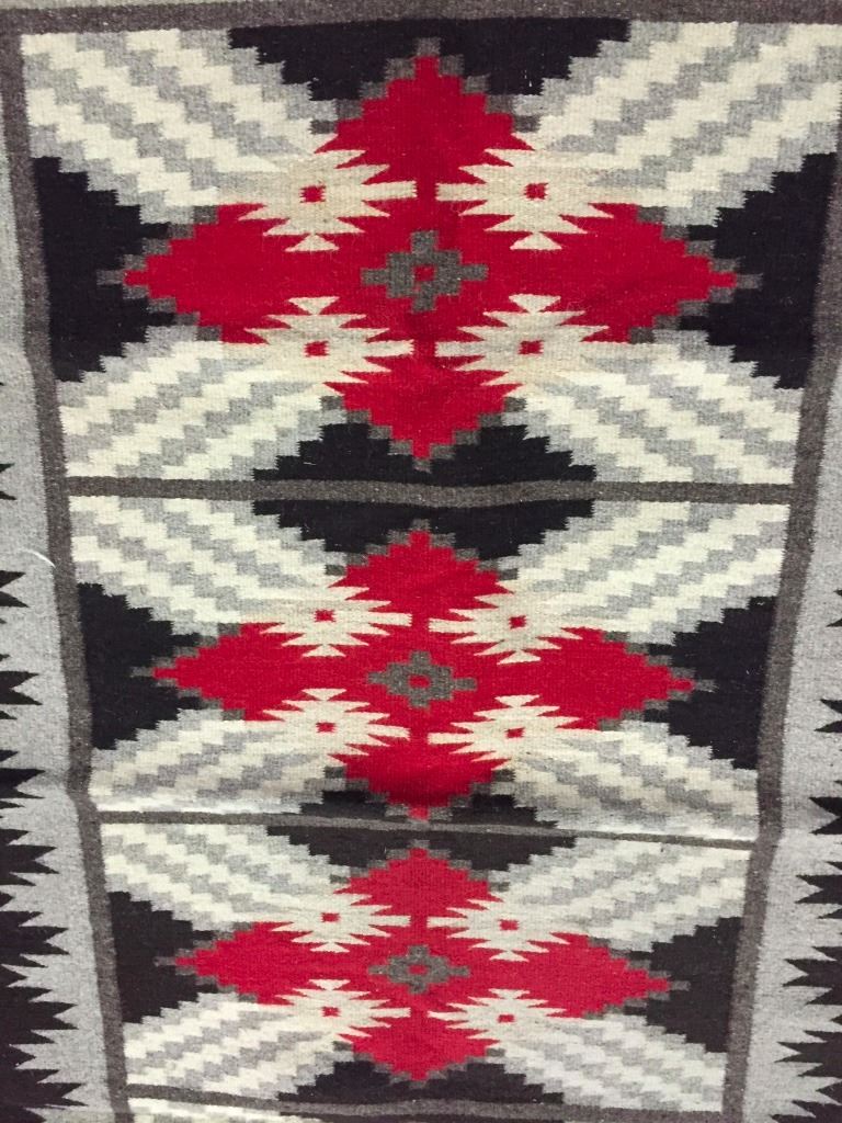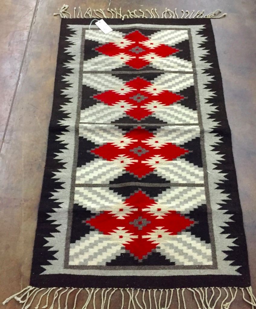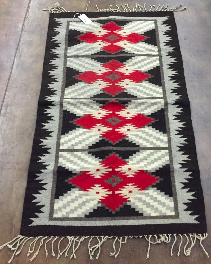 This nice southwestern design textile measures 35 inches wide by 57 inches long. Good vintage condition. Please look closely at pics - they are an important part of our description. Shipping: There will be a $7 handling / packaging fee for shipping this lot. The actual cost of postage will be added on top of that.