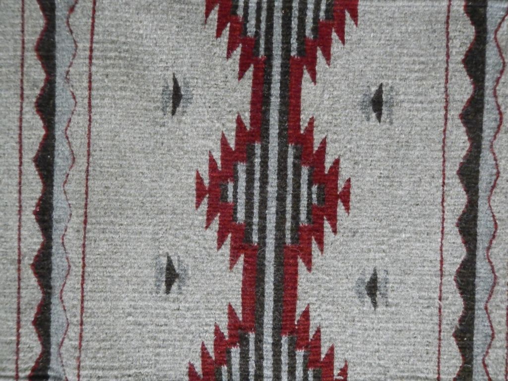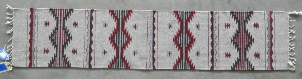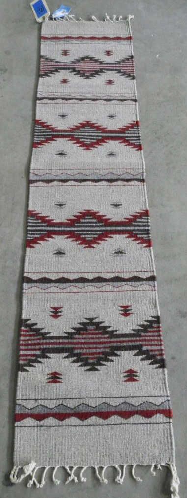 Zapotec Table Runner This table runner is made of Hand Spun Churro Wool and Color Fast Dye and Aniline Dye. It is a Navajo Style runner, the pattern is Two Grey Hills and the weaver is Luis Lazo. Made in Oaxaca, Mexico. The Zapotec are significant because 400 years ago the Spanish missionaries taught the Navajo and Zapotec how to weave, these practices are still mastered today in both Zapatec and Navajo Tribes. 100% Wool and the Size is 1.4'x6.6'