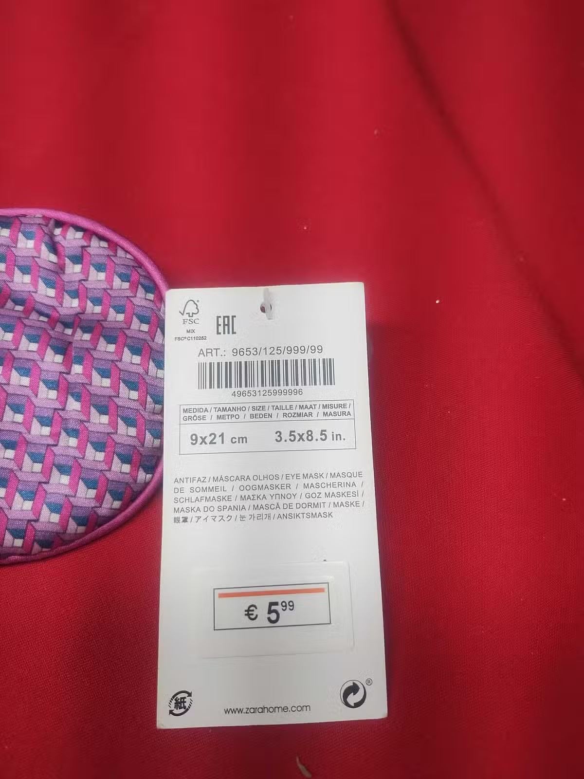 This lot of sleep masks are imported from europe and are high quality zara home brands sleep masks, there are various designs pet lot and there are 6 per lot, the details on size can be found in last photo.
