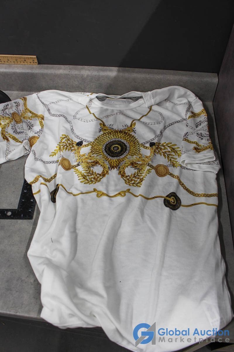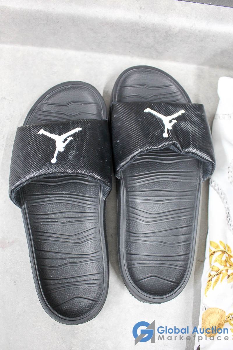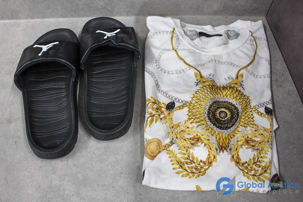 Zary Men's Versace Style Size Lg T-Shirt & Jordon Slip-On Sandals Size 10