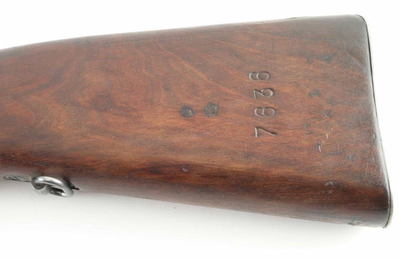 GOOD: Some minor replacement parts; metal smoothly rusted or lightly pitted in places, cleaned or re-blued; principal letters, numerals and design on metal legible; wood refinished, scratched bruised or minor cracks repaired; in good working order.