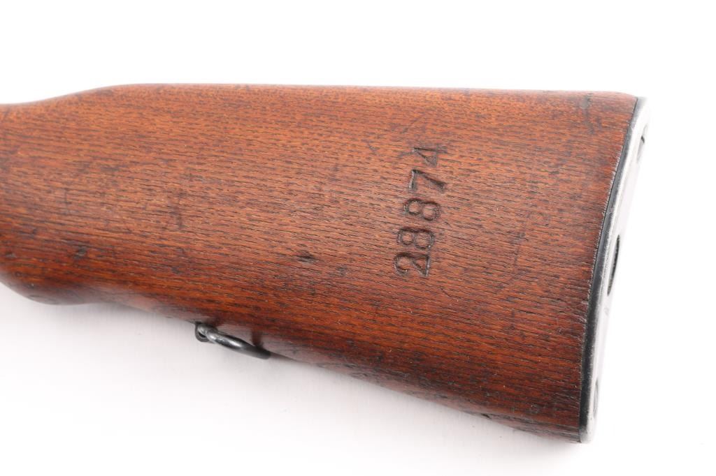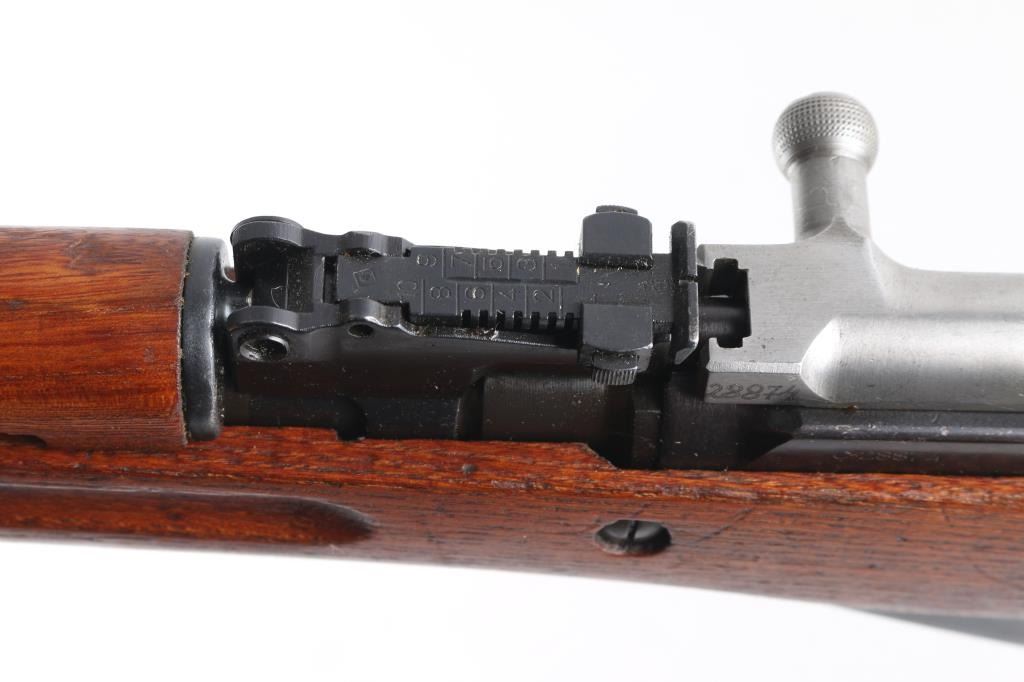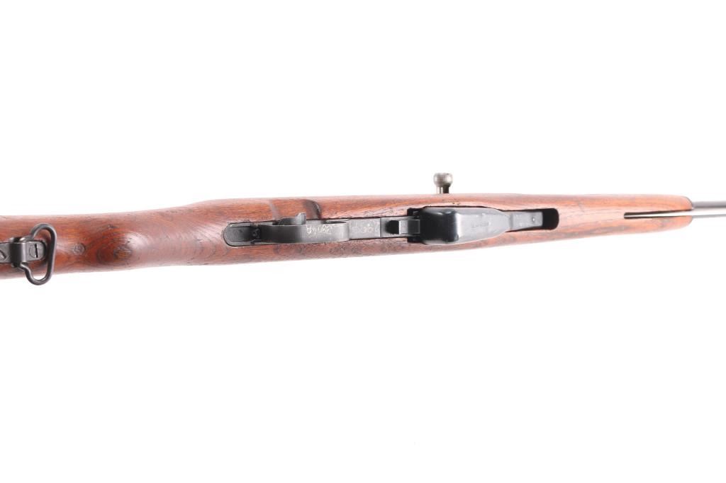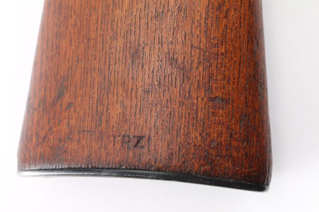 GOOD: Some minor replacement parts; metal smoothly rusted or lightly pitted in places, cleaned or re-blued; principal letters, numerals and design on metal legible; wood refinished, scratched bruised or minor cracks repaired; in good working order.