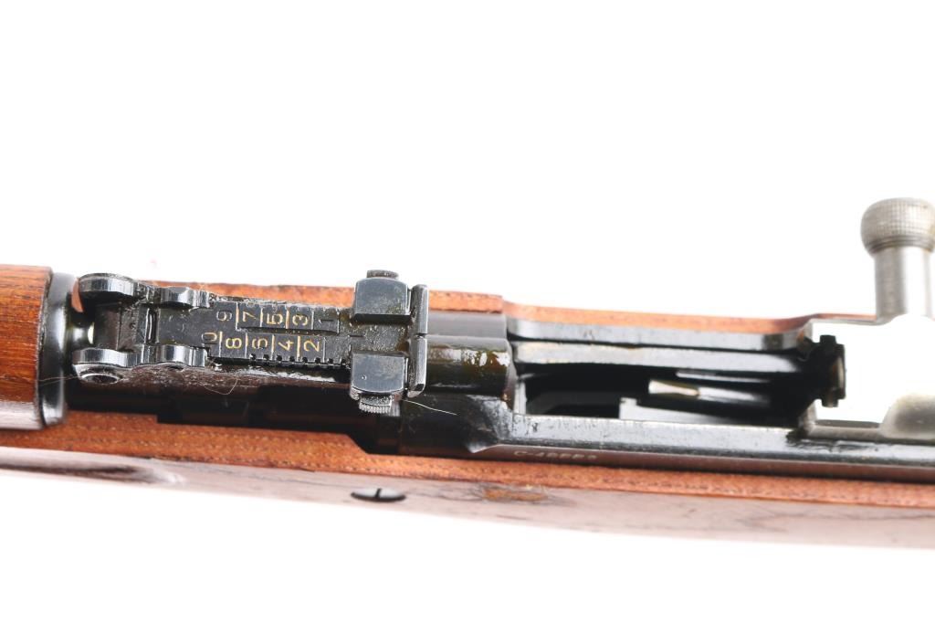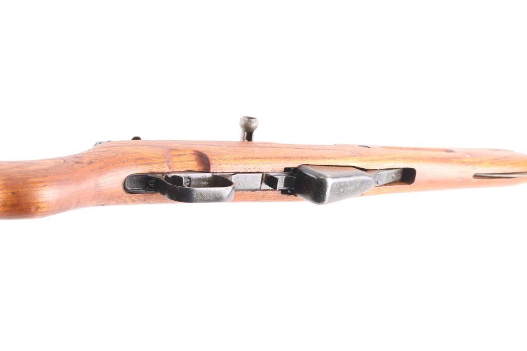 GOOD: Some minor replacement parts; metal smoothly rusted or lightly pitted in places, cleaned or re-blued; principal letters, numerals and design on metal legible; wood refinished, scratched bruised or minor cracks repaired; in good working order.