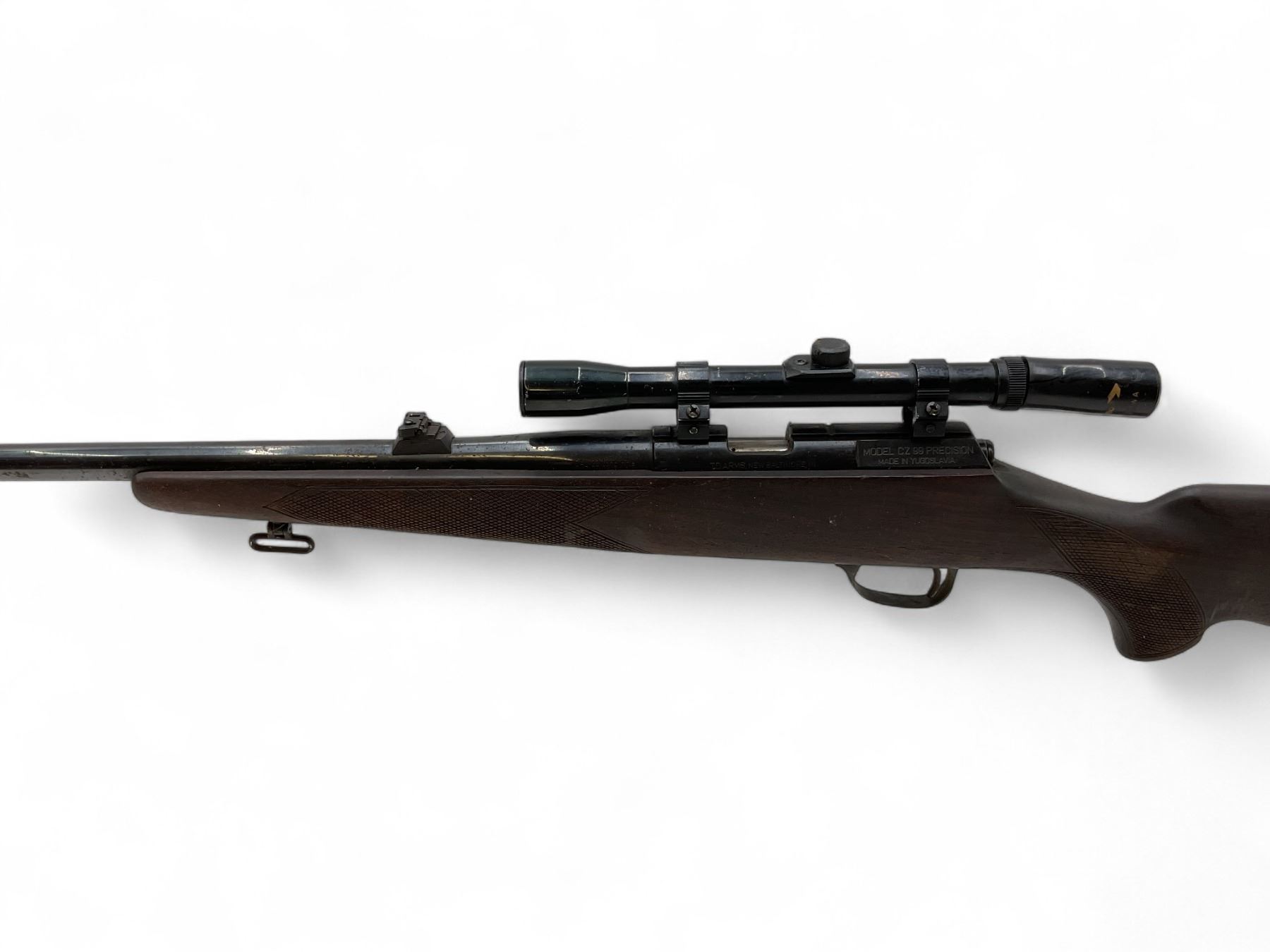 Zastava CZ99 Precision Bolt Action Rifle .22LR 22" Barrel Wood Stock With 4X20 Scope. No magazine included. Hooded front sight, flip down rear sight. Gamo 4X20 Scope is broken at eye piece. This is a non-restricted firearm.