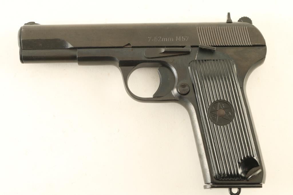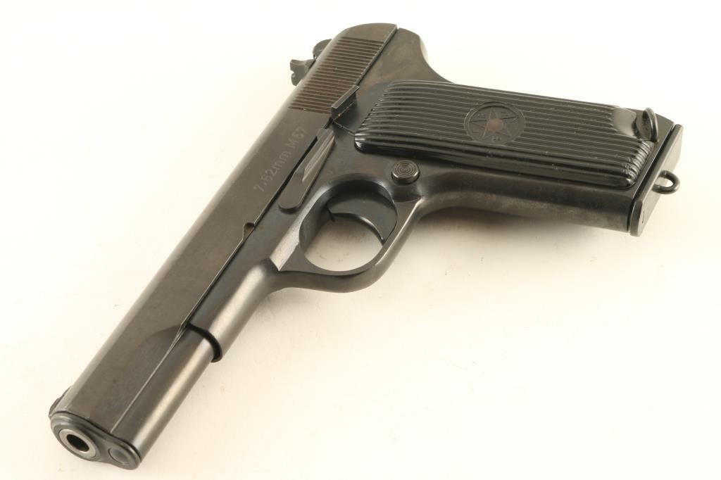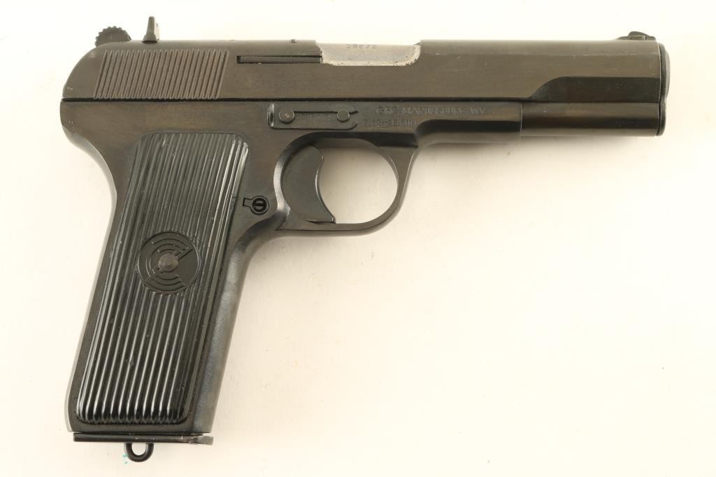Yugoslavian military pistol imported by GRC, Martinsburg WV. Features approx 4.5" barrel, fixed sights, detachable magazine, manual safety, grooved plastic grips, single action trigger. Safety lever is moved up to allow firing. Bore is very good condition. Finish is blued with 95% coverage, some scratches and scuffs, appears to be factory reblue, with small areas of pitting under the re-finish. Black plastic grips in very good condition. Observed numbers match. Includes (1) magazine. Condition is NRA Very Good (as refinished) *** C&R Firearm ***