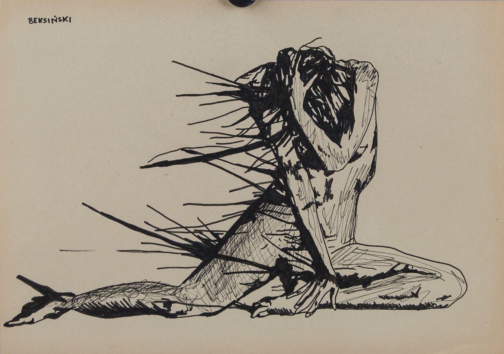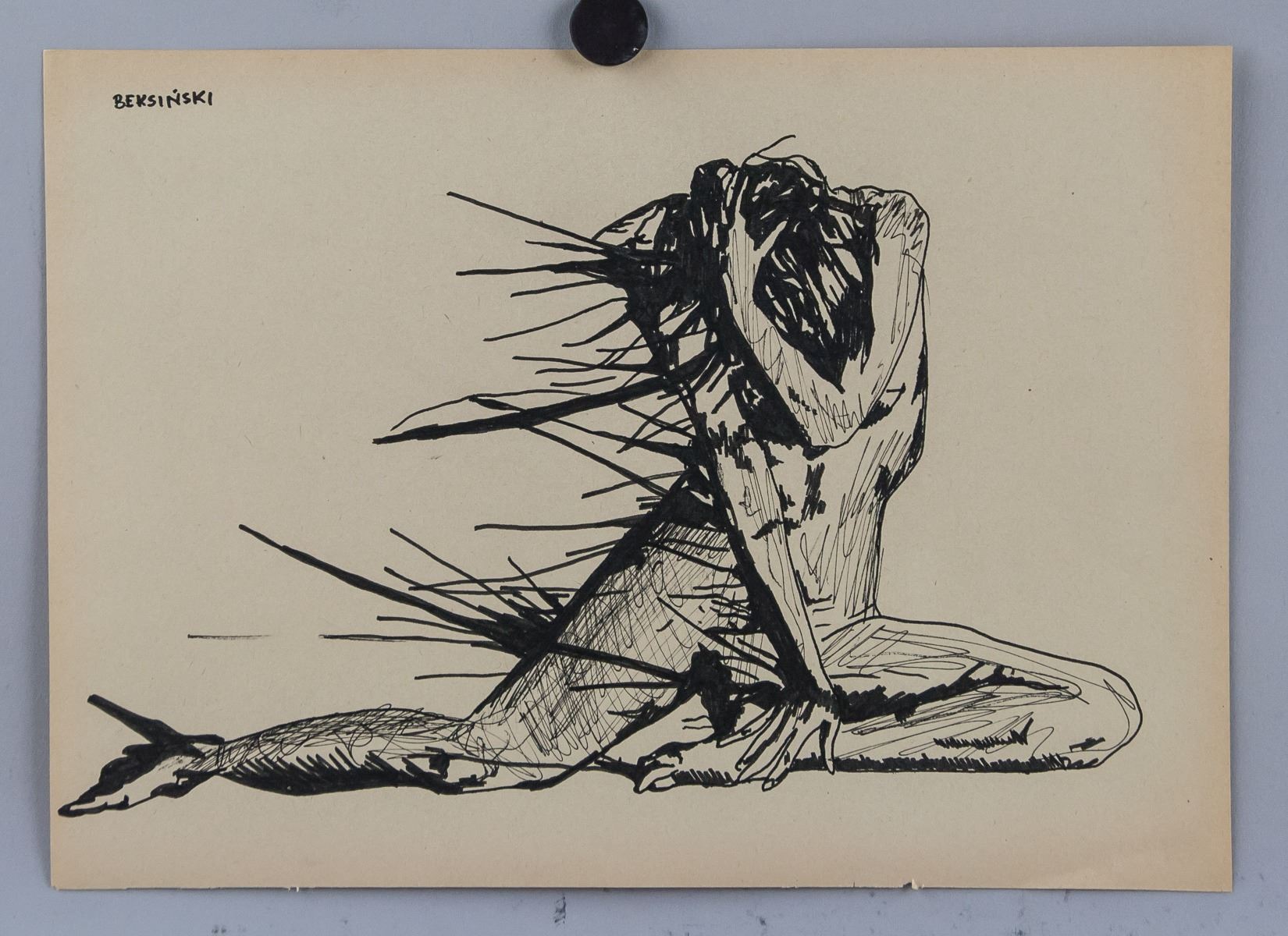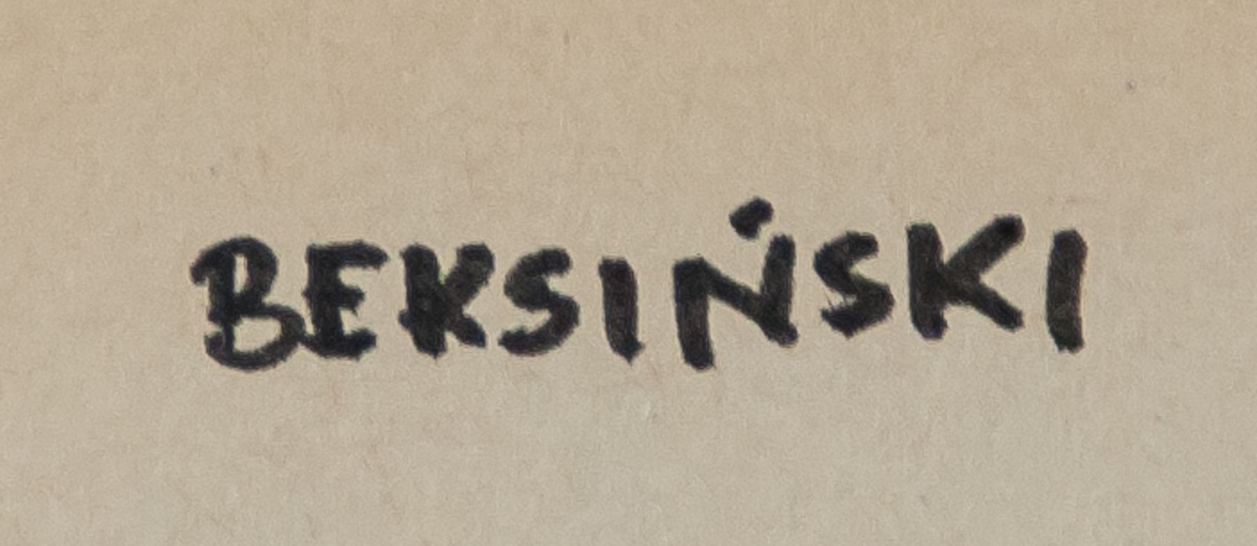 Ink on paper. Featuring a surrealist portrait of a man. Signed BEKSINSKI on the upper left corner. 21 x 29 cm (8.3 x 11.4 inches). PROVENANCE: Southern Ontario estate