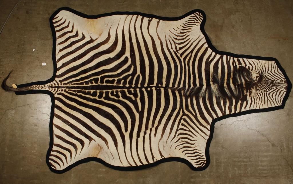 African Zebra Rug. Felt Backed, Measures over 9 Feet Long and Over 5 Feet Wide