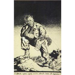 Zec- Pair of black original cartoon sketches 'Here you are, don't loose it again' 'Victory' and 'Peace in Europe' each 36cm x 22cm