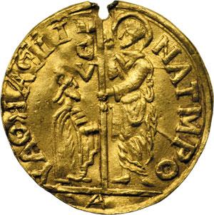 Oriente Latino. Zecca incerta. Contraffazione di zecchino, XVIII sec. D/ IIPAROAYNATMPO. In esergo: A. AU. g. 2.89 RR. Foro. SPL.