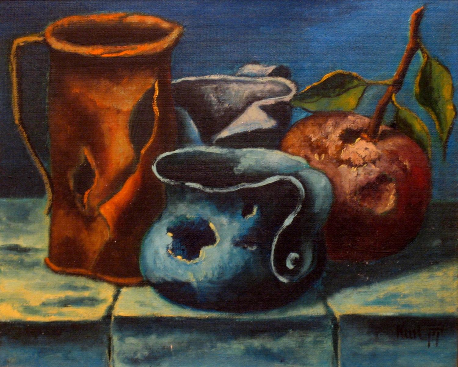 Zeev Kun, Israeli Art, B. 1930, Still Life, Oil on canvas, 21x27cm, Signed., , , , ,