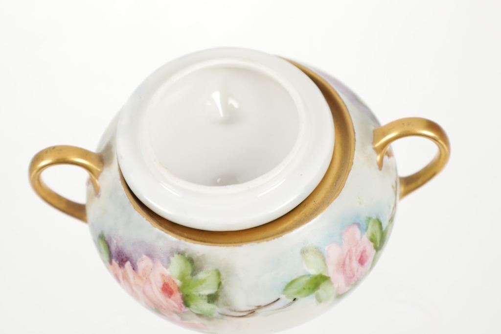 Featured in this lot is this pair of pottery vessels from Bavarian artist Zeh Scherzer circa 1880-1918. There are two pottery vessels that feature porcelain construction and shows beautifully decorated side walling of the vessels with floral design and gilt rim and handle for the pitcher and to the handles of the sugar bowl. The sugar bowl features a beautiful floral decoration with pink flowers and is also decorating the lid. The firm was established in Rehau in 1880 by Johann Nicol Adam Zeh. His partners were Johann Michael Scherzer junior, Georg Adam Winterling, Johann Nicol Jacob junior, Johann Andreas Karl Wolfel and Johann Paulus Hertel. In 1908 the company opened own art department. In 1910 it was transformed into a limited company (Porzellanfabrik Zeh, Scherzer & Co. A.G.). It exported over 70 percent of production to United States. Quality of Zeh Scherzer products was compared to Rosenthal or Hutschenreuther. The condition of this pair of sugar bowl and pitcher is good with no obvious signs of damage and shows good overall condition. The measurements of the sugar bowl is 4" x 5 3/4" x 4 1/2" and the pitcher measures 3 1/2" x 4" x 5 1/4".