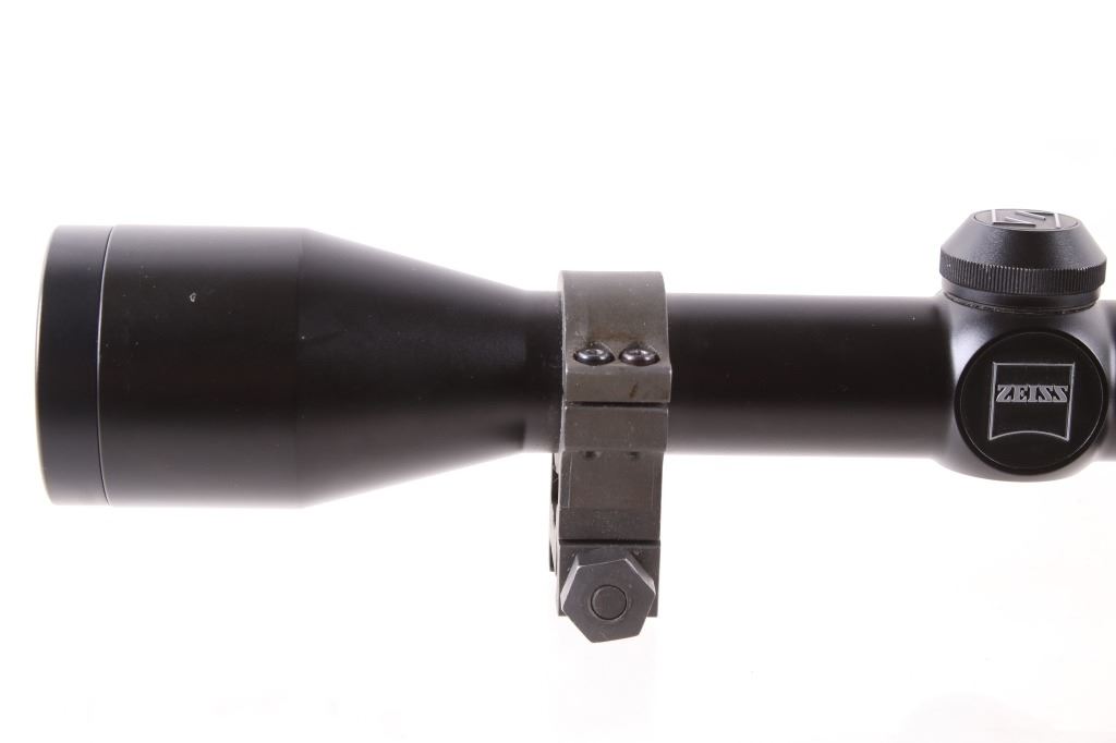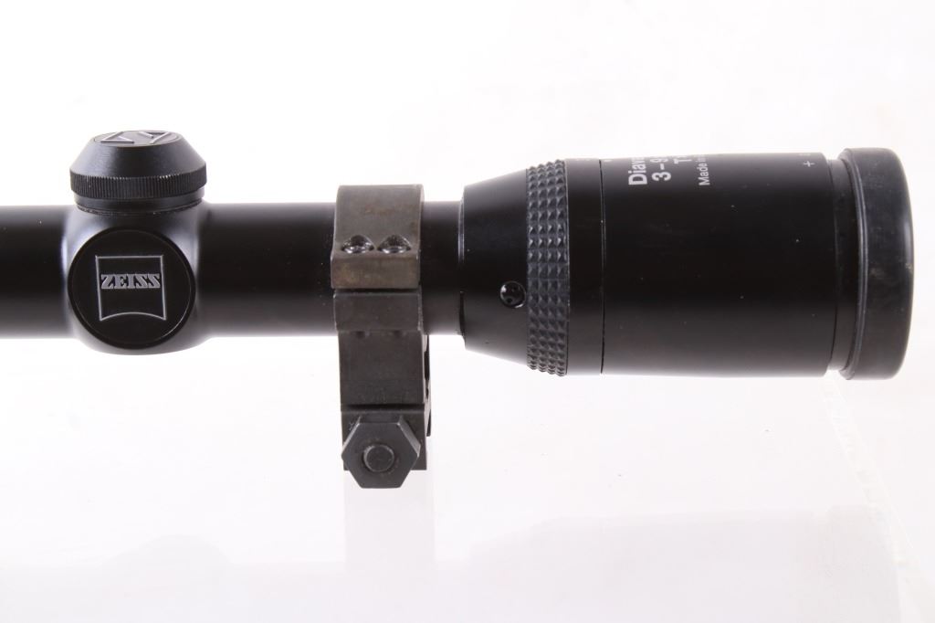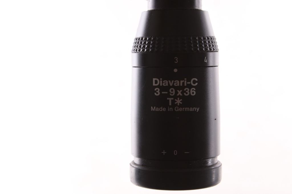 For your consideration is a Zeiss Diavari-C 3-9x36 T* rifle scope. This made in Germany optic features a 36mm lens. The scope has a Z-Plex reticle as well as 1cm click adjustments for windage and elevation. This scope is made from aluminum and is very light weight. It shows good condition with some minor wear from the scope rings. This rifle scope measures 11.5” long.