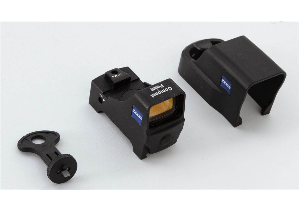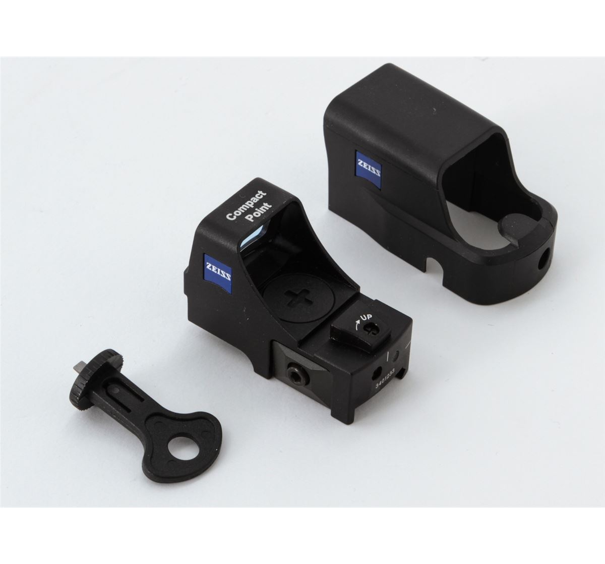 Zeiss Victory Compact Point, with standard mounting. The Victory Compact Point provides dangerous game and deep thicket hunters with the perfect sighting mechanism for spontaneous, lightning-quick aiming at moving game. It combines three key practical benefits: an optimised, ergonomic sight, a wider overview across the field of fire and increased aiming accuracy through the fine, adjustable illuminated dot. Brand new in original box with instructions. Retails @ $526.95. Est.: $350-$450. (Field Time)