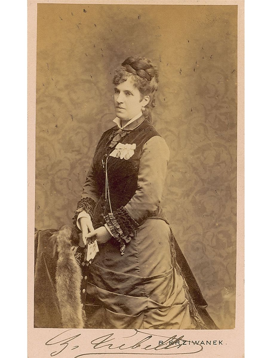 Original 2.5 x 4 carte-de-visite photo by R. Krziwanek of Vienna, signed in the lower border in black ink, “Z. Trebelli.” In fine condition, with some light spots to image and mounting remnants to reverse.