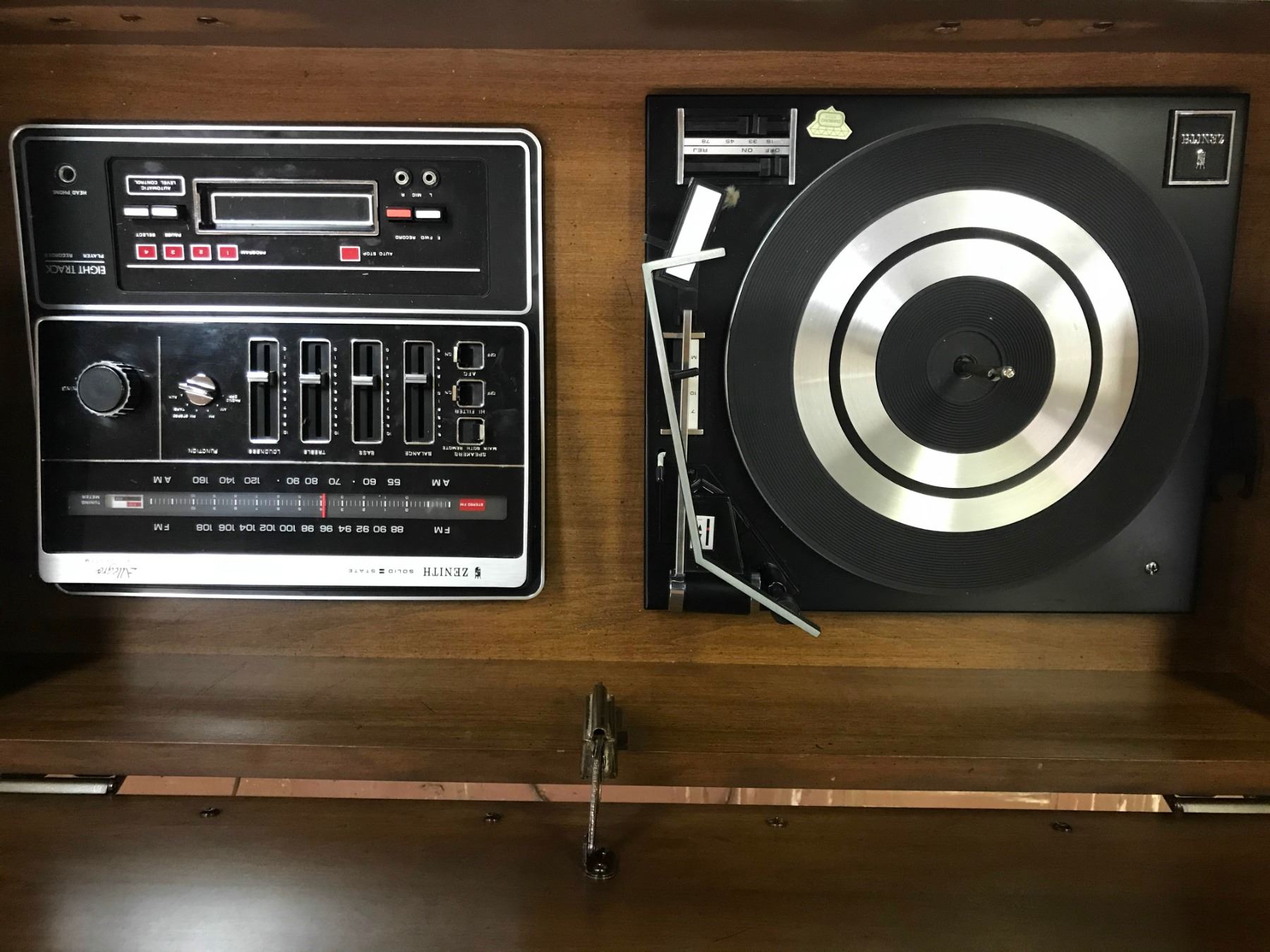 Zenith - Allegro Sound System Record Player/Radio Cabinet. Dimensions 26" height x 53.5" length x 17.5" deep