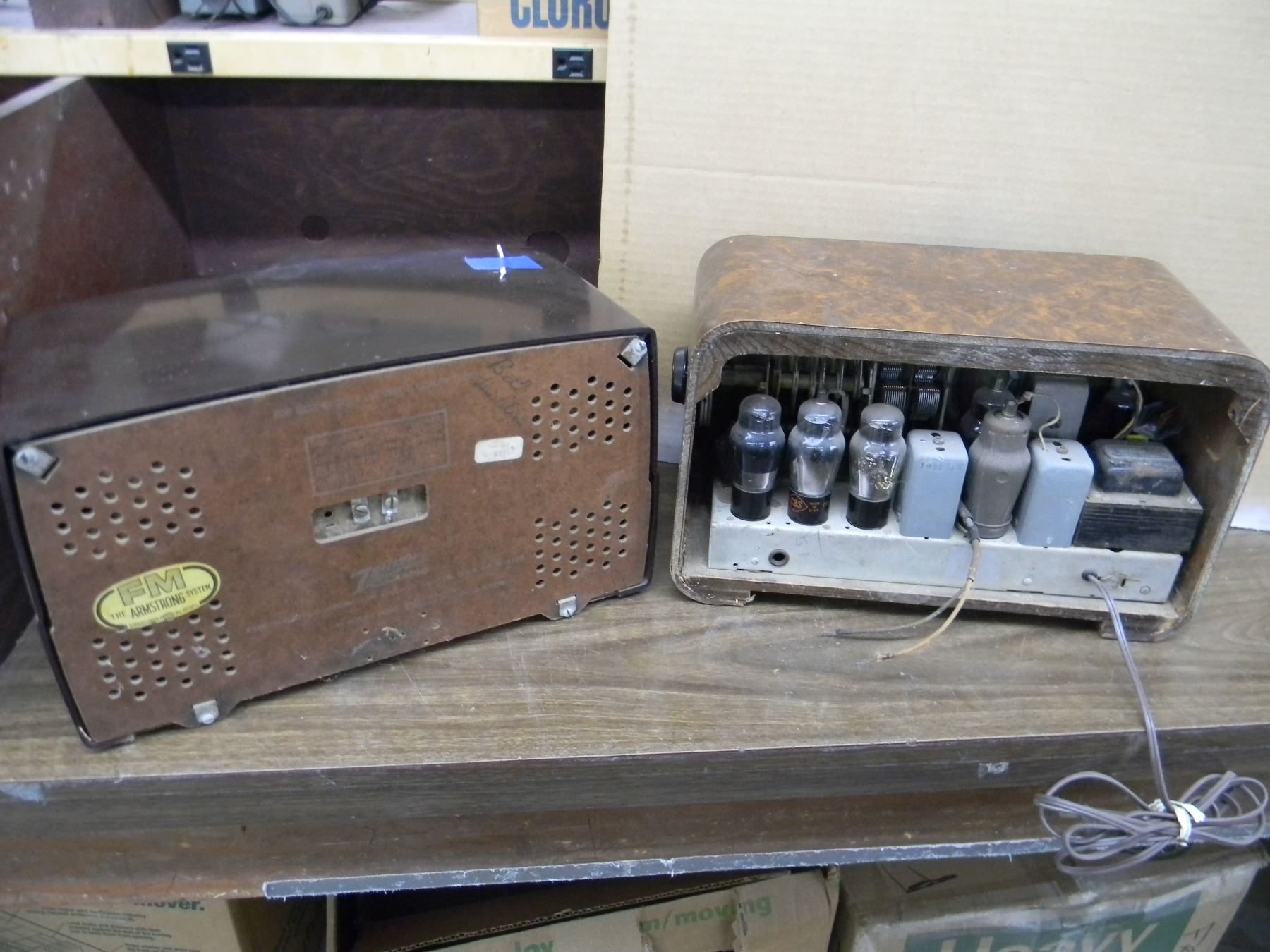 model 7H820-Z; brown bakelite AM/FM and unknown (Belmont?) model SC-552