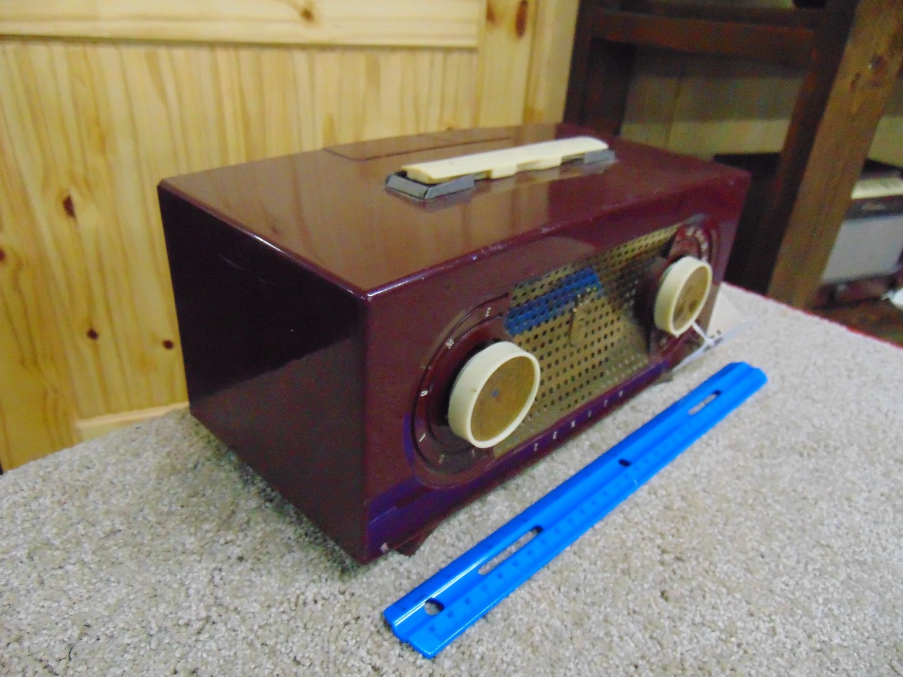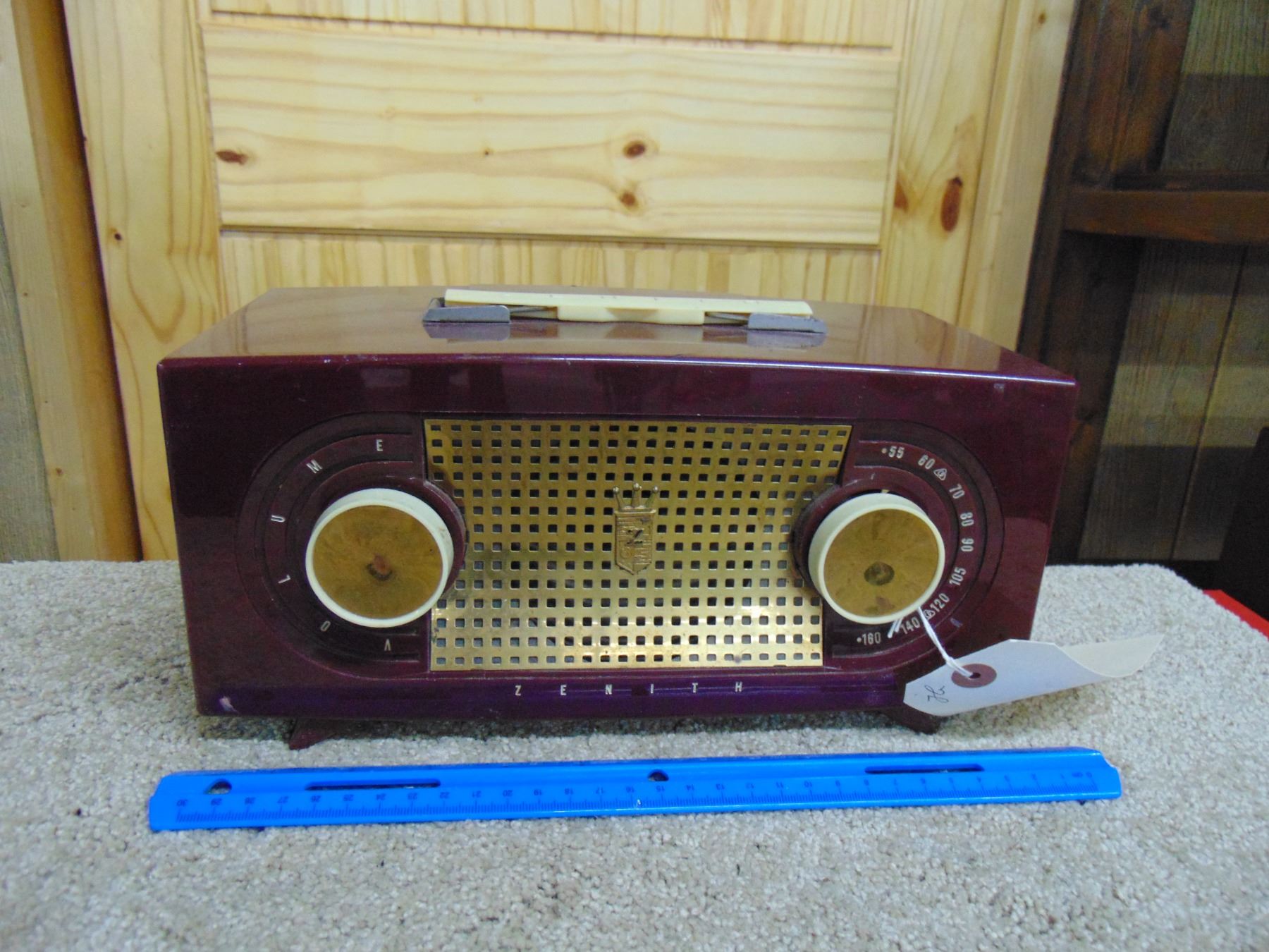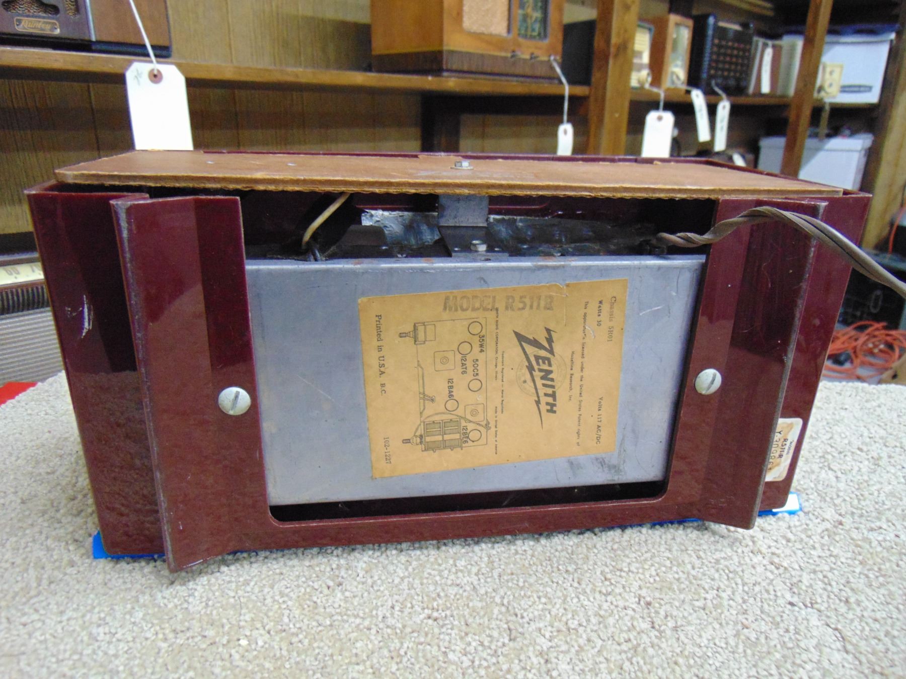 Zenith maroon bakelite table set; model R511R; with original back; repaired crack on top; works