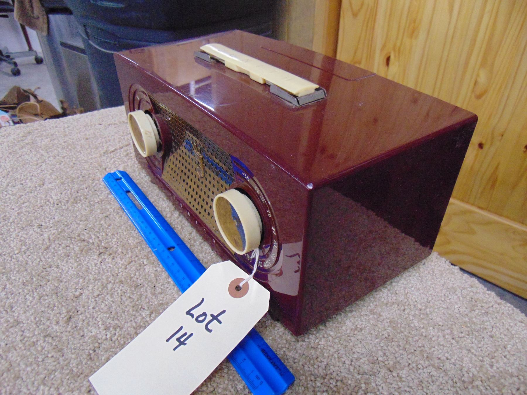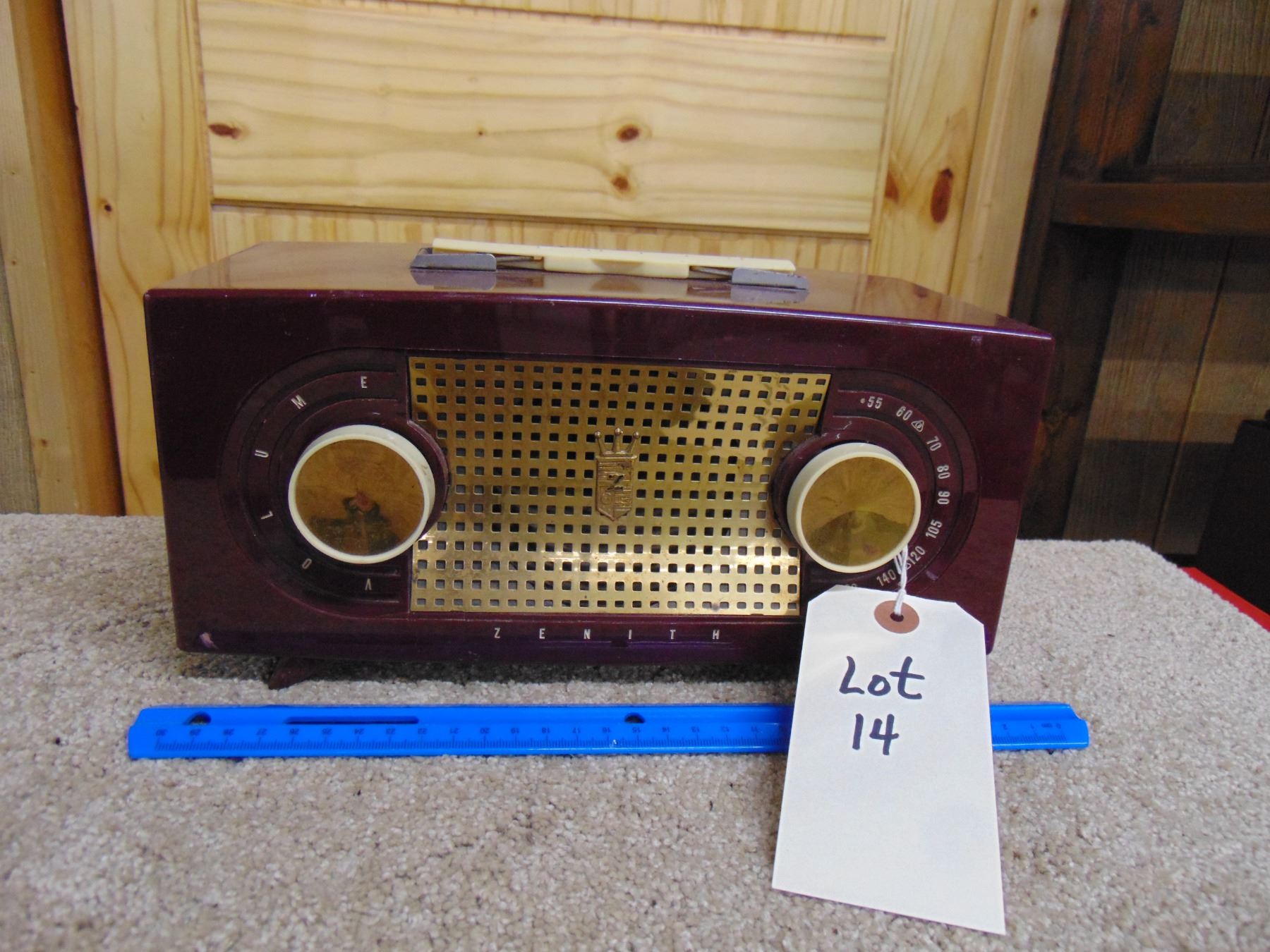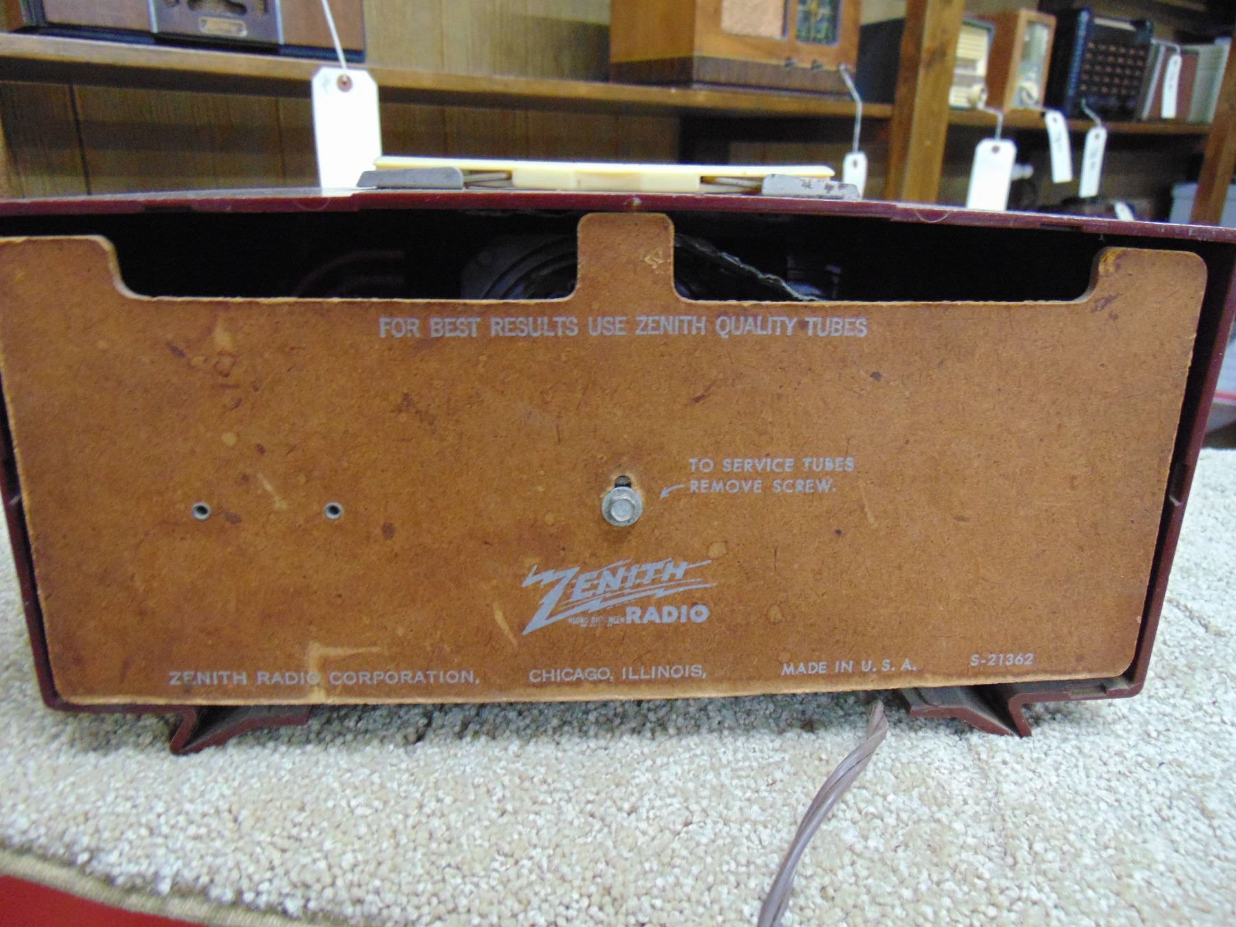 Zenith maroon bakelite table set; model R511R; with original back; repaired crack on top; works