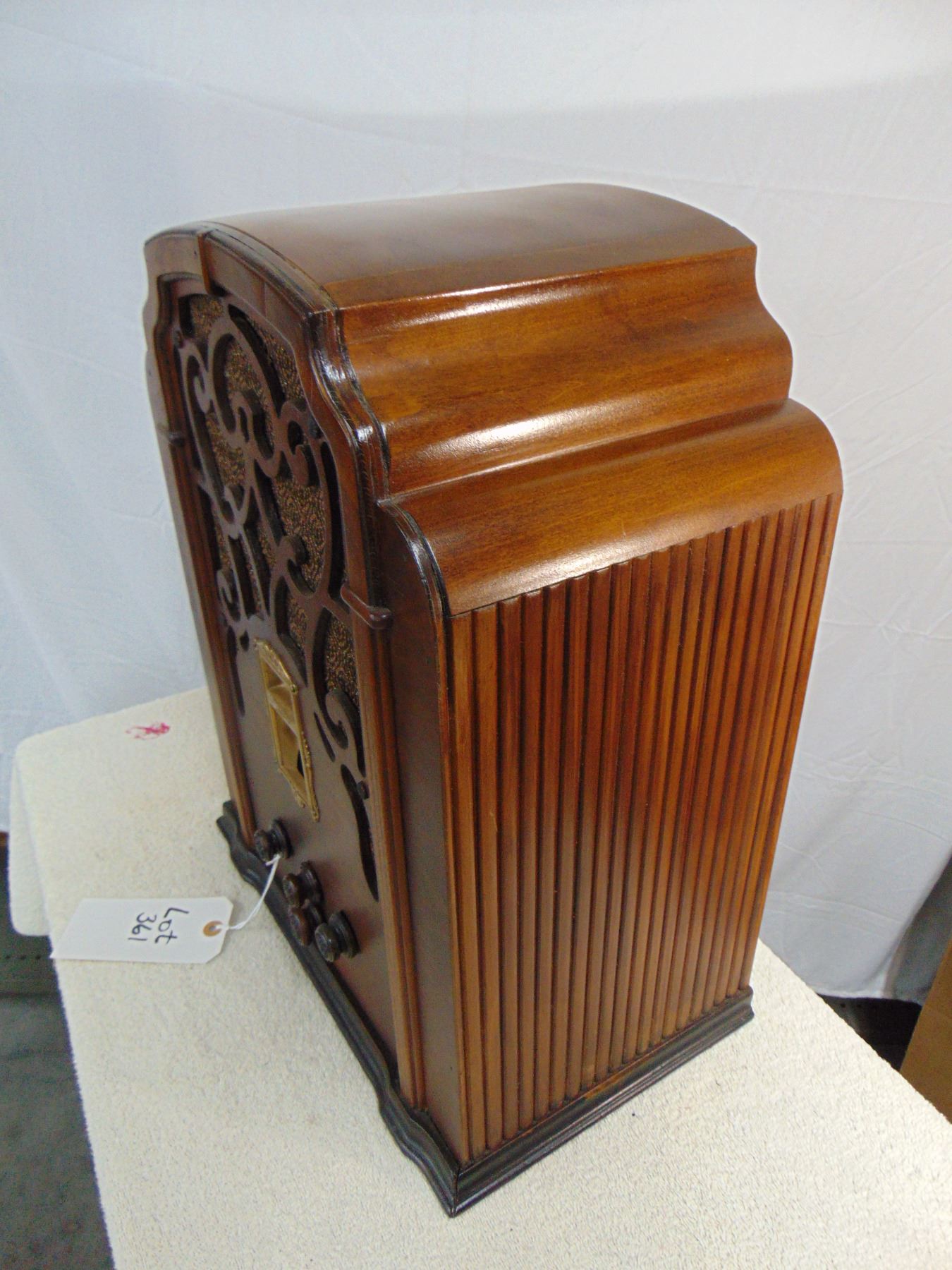 Large wood tombstone; model 715; restored in and out; works well; excellent condition
