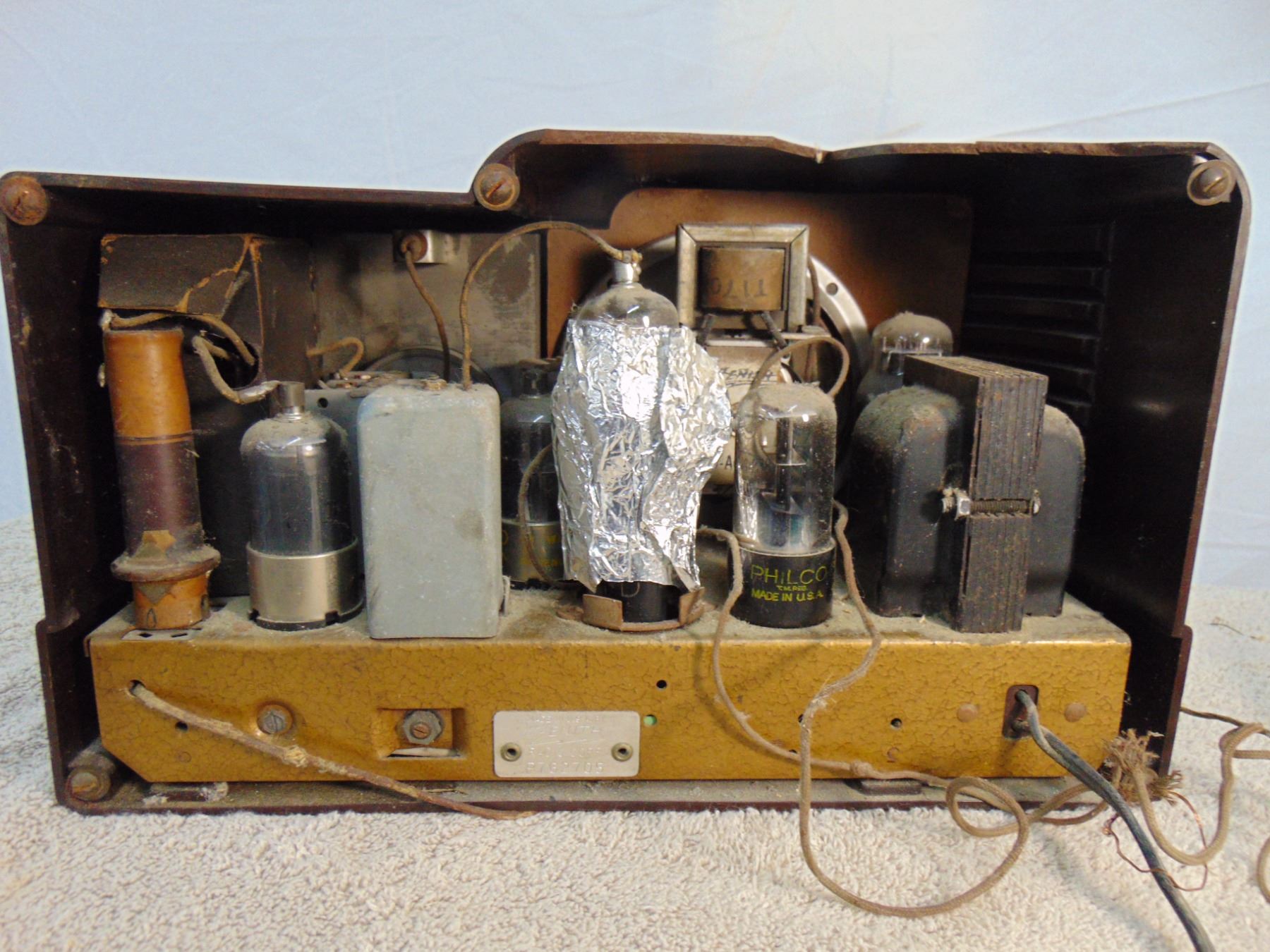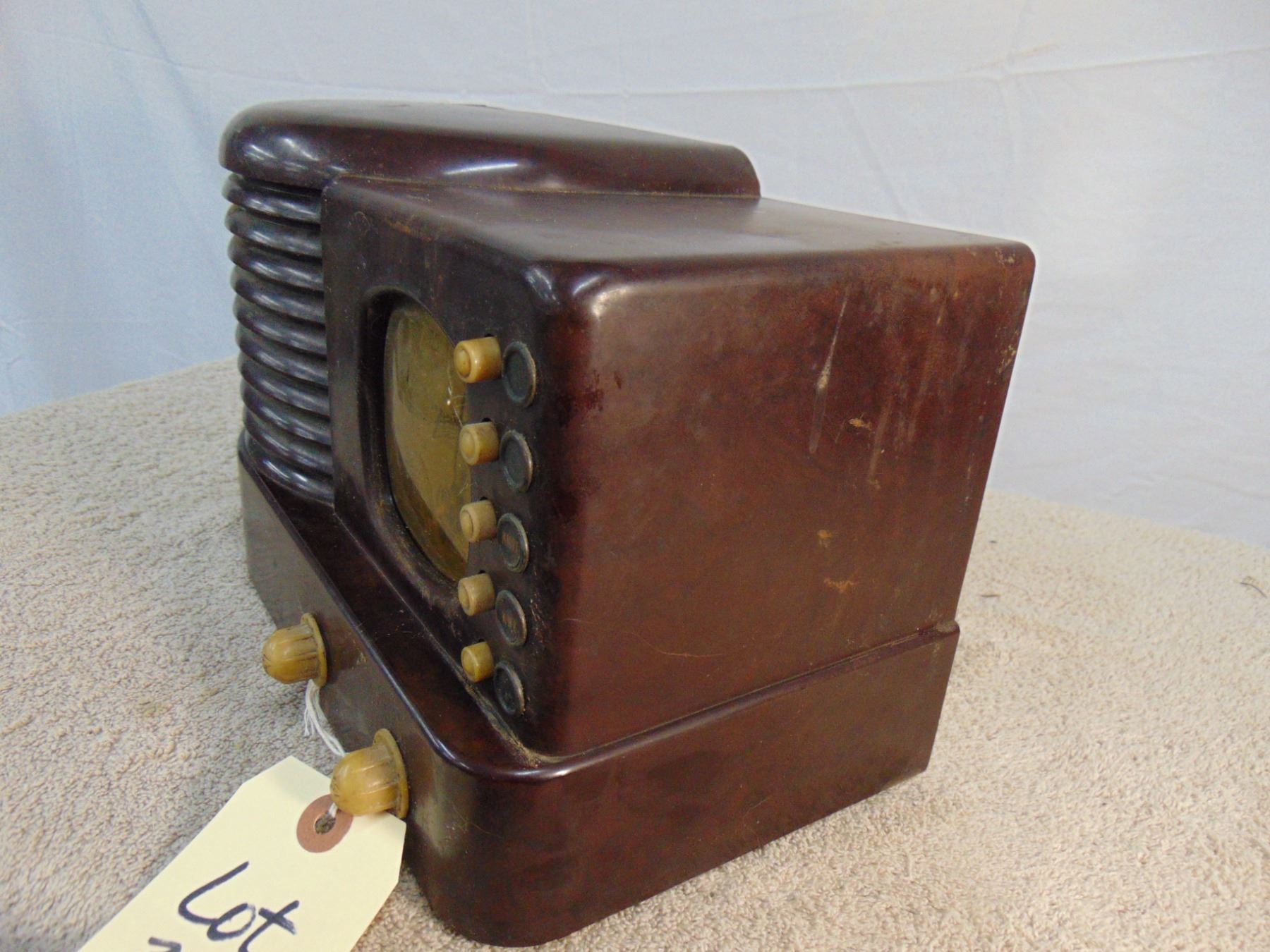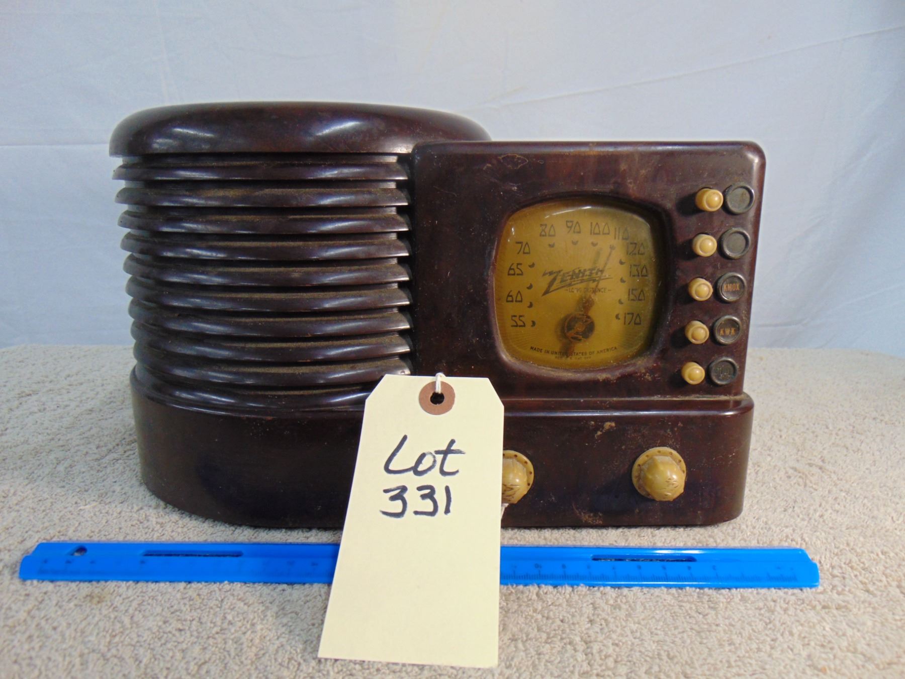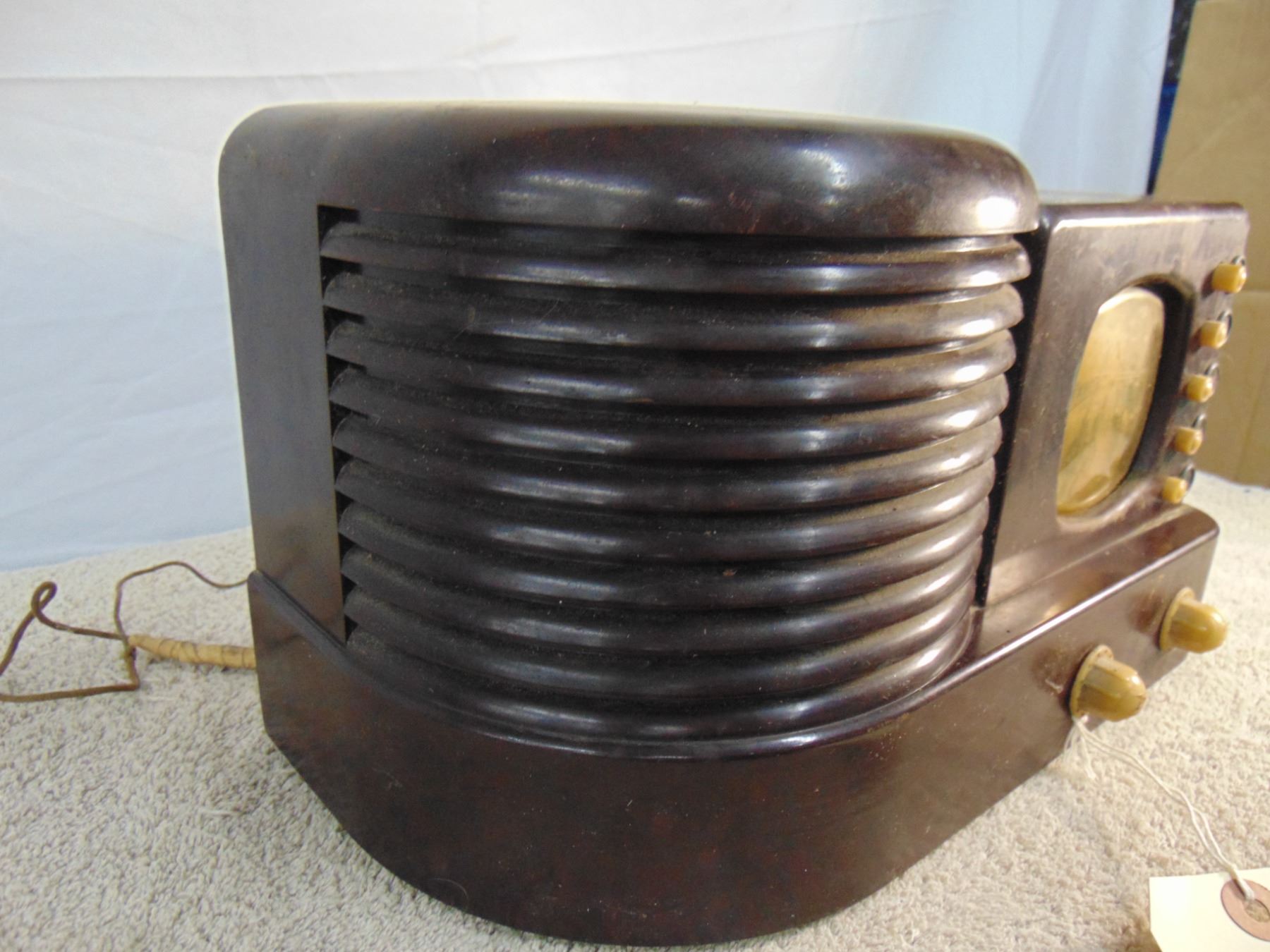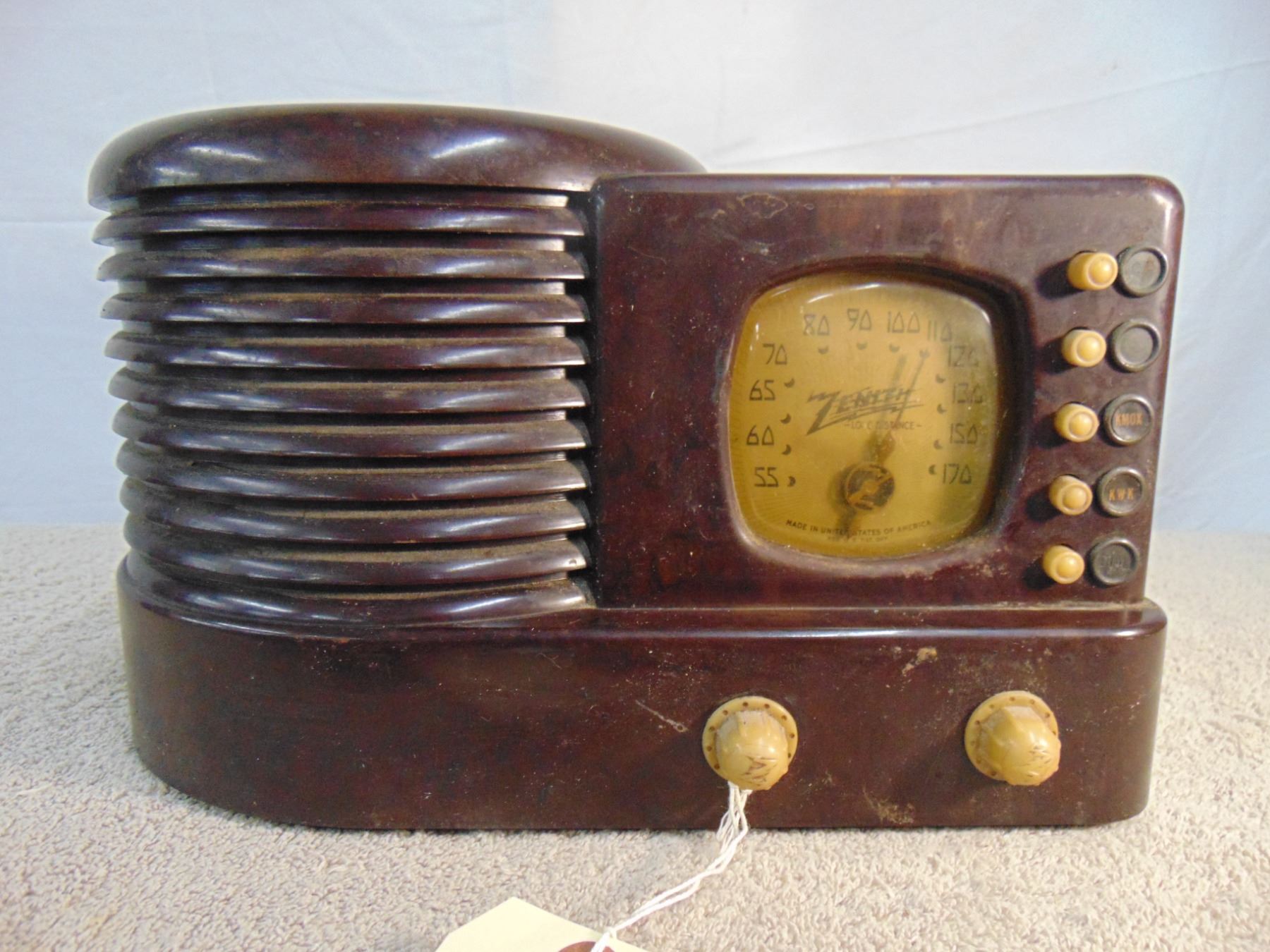 Zenith brown bakelite table set; model 5R312; cabinet broken, but otherwise appears complete