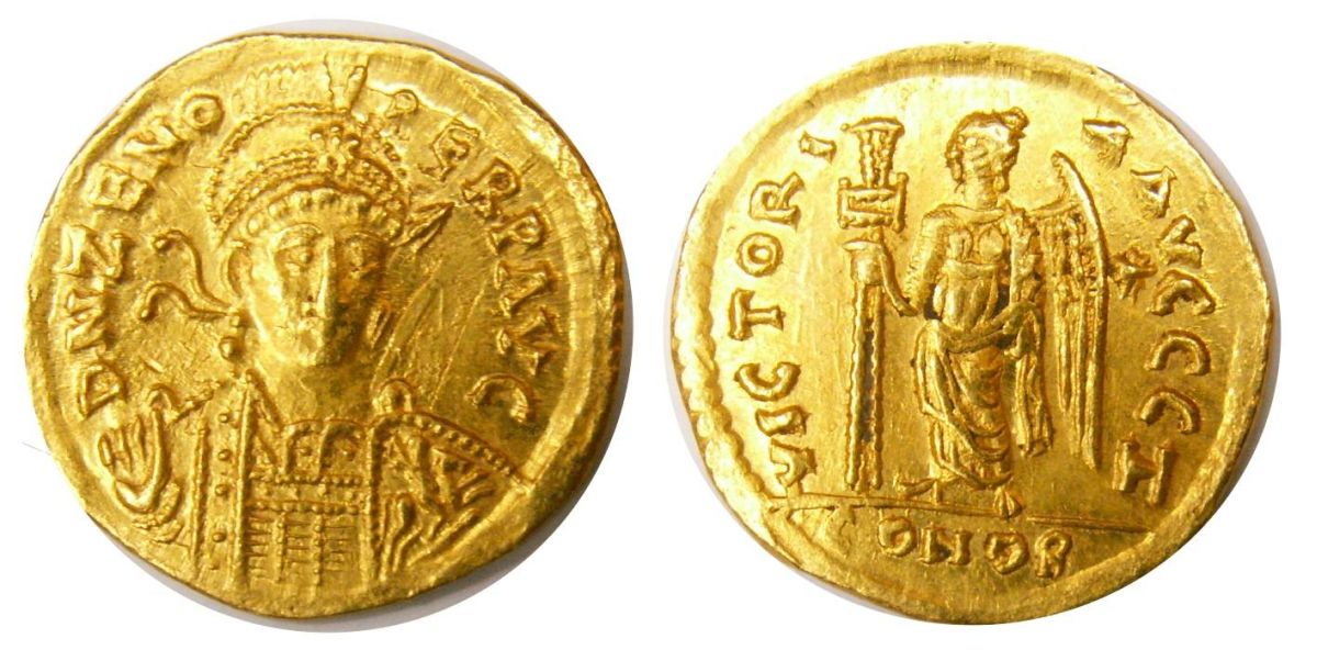 Zeno AV Solidus. Second reign, 476-491 AD. Constantinople mint. First issue. D N ZENO PERP AVG, diad