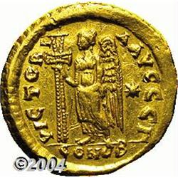 <B>Zeno.</B></I> A.D. 474-491. AV solidus (20 mm, 4.47 g). Constantinople. Diademed, helmeted and cuirassed bust facing slightly right, holding spear and shield decorated with a horseman spearing fallen enemy / Victory standing left, holding long jewelled cross; star in right field; (Gamma)/CONOB. RIC 910; Depeyrot 108/1. VF, obverse graffito. <BR><I>From the Geneva Collection.</B></I> <BR><BR><B>Important notice:</B> Heritage usually auctions material at the rate of 200-250 lots per hour. On some occasions eBay Live bid software or the Internet may not be able to keep up with the pace of the auction. We recommend placing a realistic absentee bid now as insurance to avoid disappointment. Occasionally the auctioneer may eliminate or reject an eBay Live bid, and the auctioneer may also reopen a lot after the close of the eBay live bidding (usually because we missed an audience bid), and may reject your bid even if it shows you as the winning bidder. By bidding via eBay Live, you agree that Heritage may award the lot to another bidder at its sole discretion under the circumstances described above or any other reasonable circumstances. Since eBay bids are not shown to us until we open the lot on the floor, we treat those bids just like floor bids. In most cases the floor responds before the eBay bid is presented to us, due to Internet lag time, so for consistency we have made it a policy that floor bids are always considered first over tie eBay live bids. Also please note that all Heritage lots purchased through eBay Live carry a 20% Buyer's Premium. Please make sure you read the Terms and Conditions before you bid.
