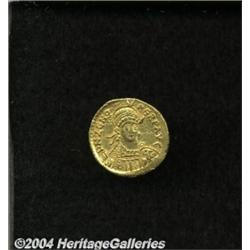 <B>Zeno.</B></I> A.D. 474-491. AV solidus (20 mm, 4.47 g). Constantinople. Diademed, helmeted and cuirassed bust facing slightly right, holding spear and shield decorated with a horseman spearing fallen enemy / Victory standing left, holding long jewelled cross; star in right field; (Gamma)/CONOB. RIC 910; Depeyrot 108/1. VF, obverse graffito. <BR><I>From the Geneva Collection.</B></I> <BR><BR><B>Important notice:</B> Heritage usually auctions material at the rate of 200-250 lots per hour. On some occasions eBay Live bid software or the Internet may not be able to keep up with the pace of the auction. We recommend placing a realistic absentee bid now as insurance to avoid disappointment. Occasionally the auctioneer may eliminate or reject an eBay Live bid, and the auctioneer may also reopen a lot after the close of the eBay live bidding (usually because we missed an audience bid), and may reject your bid even if it shows you as the winning bidder. By bidding via eBay Live, you agree that Heritage may award the lot to another bidder at its sole discretion under the circumstances described above or any other reasonable circumstances. Since eBay bids are not shown to us until we open the lot on the floor, we treat those bids just like floor bids. In most cases the floor responds before the eBay bid is presented to us, due to Internet lag time, so for consistency we have made it a policy that floor bids are always considered first over tie eBay live bids. Also please note that all Heritage lots purchased through eBay Live carry a 20% Buyer's Premium. Please make sure you read the Terms and Conditions before you bid.