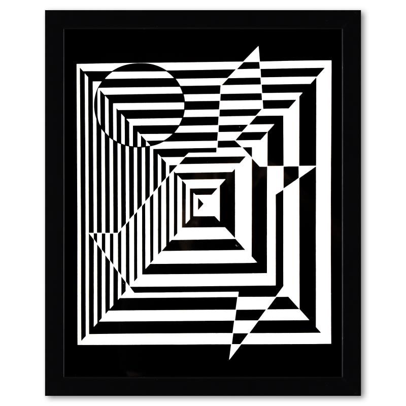 "Zeta Yablapour-II et Anadyr de la serie Lineaires (Triptych)" is a set of heliogravure prints on paper published in 1973 by Victor Vasarely (1908-1997). These pieces come custom framed with a letter of authenticity and with a 1976 Vasarely paperback. Measures approx. 12.5" x 15" (frame) 10" x 13" (image).