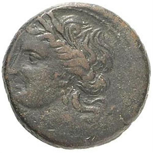 Africa. Zeugitania-Cartagine. AE 27 mm. 200-146 a.C. D/ Testa di Persefone - Tanit a sinistra. R/ Cavallo al passo a destra. Sotto, un globetto. Muller II, 99, 244. gr. 17.52 AE. Bel BB/BB+.