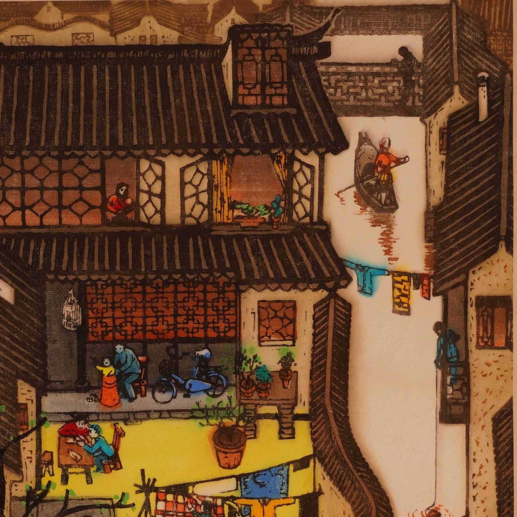 Zhai Zhimin, Color Woodcut, Small Yard, Signed & Numbered