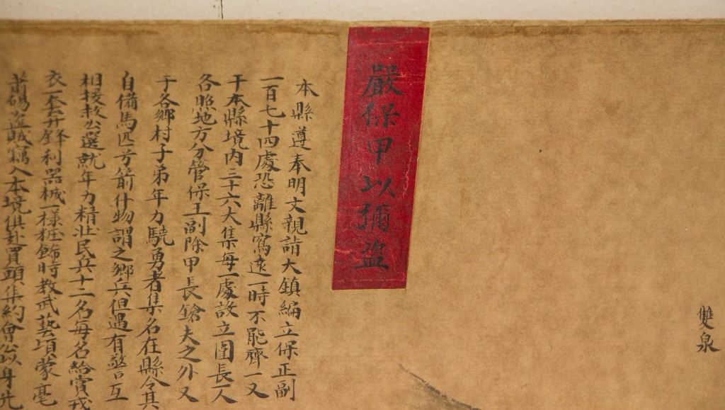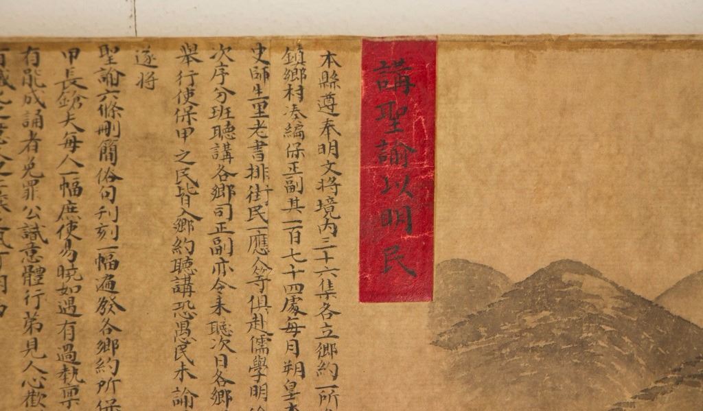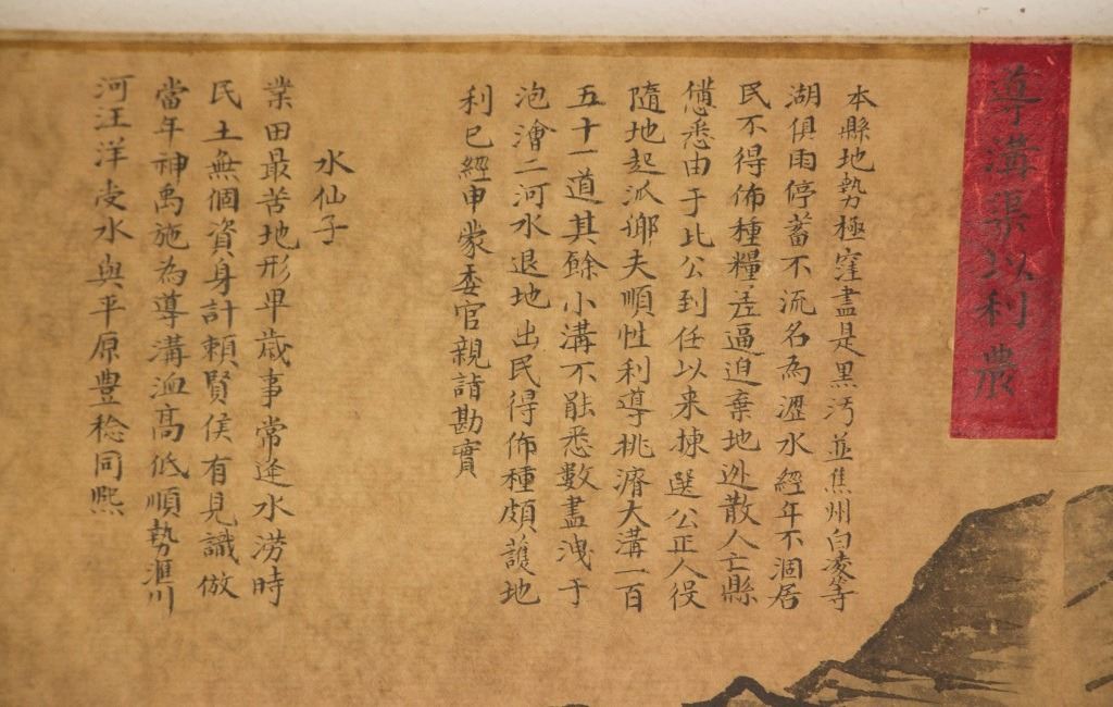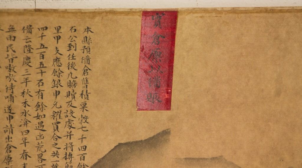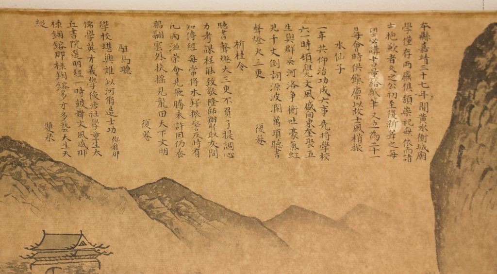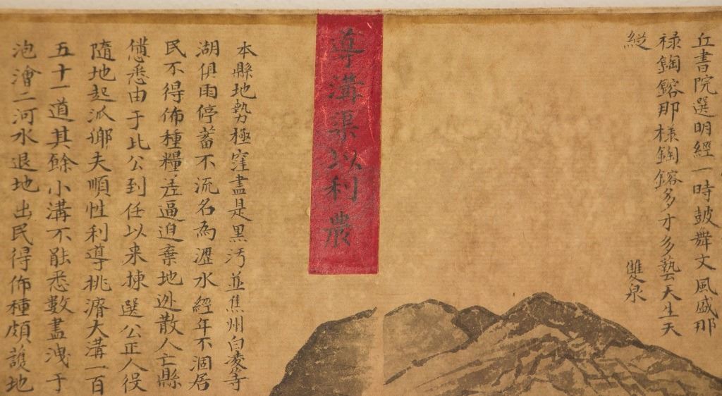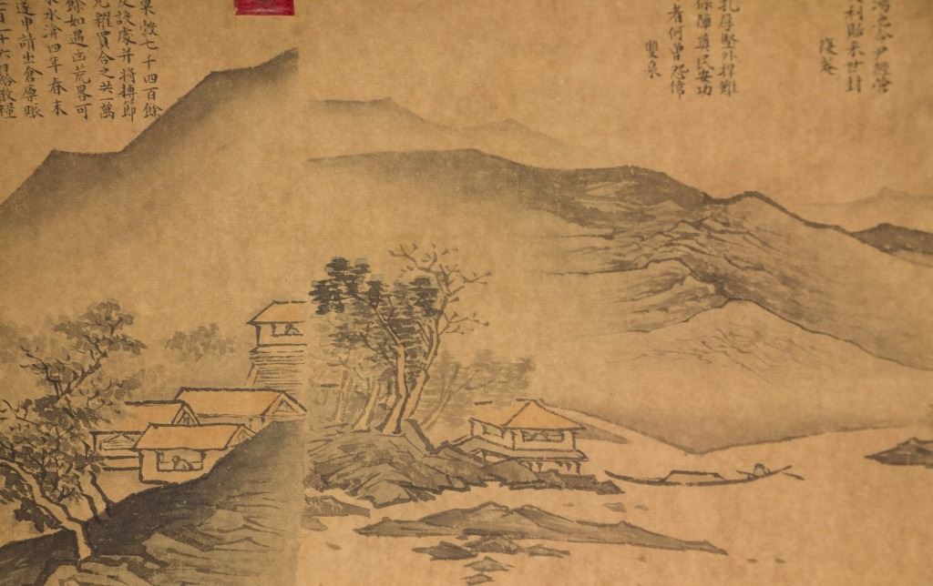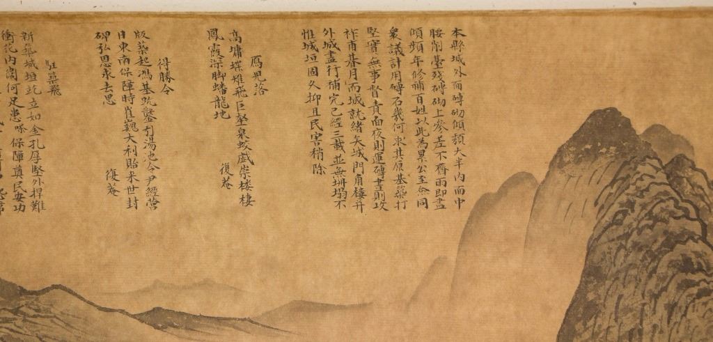 "Zai Yong Ji Tu", Zhan Jifeng (1532-1602) painted for Zuo Siming when he was the county magistrate of Yongcheng; depicting Zuo Siming's political achievements; Chinese ink and watercolour on paper; long hand scroll; title written by Li Zhi, Zuo's disciple, inscribed with 1 seal; afterword written by Li Nan, Zuo's disciple, inscribed with 1 seal; of 29 cm x 445 cm