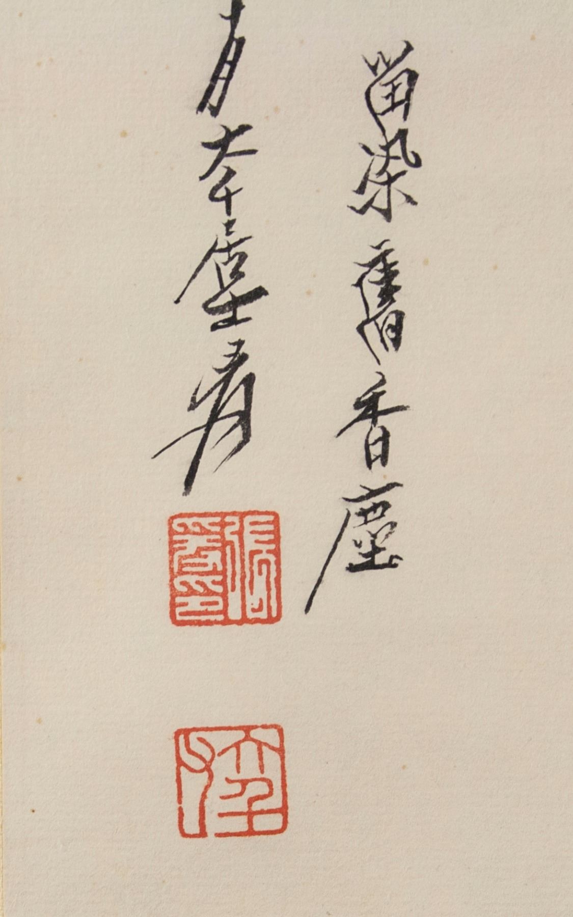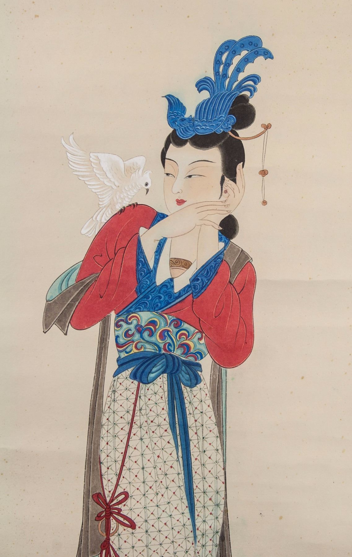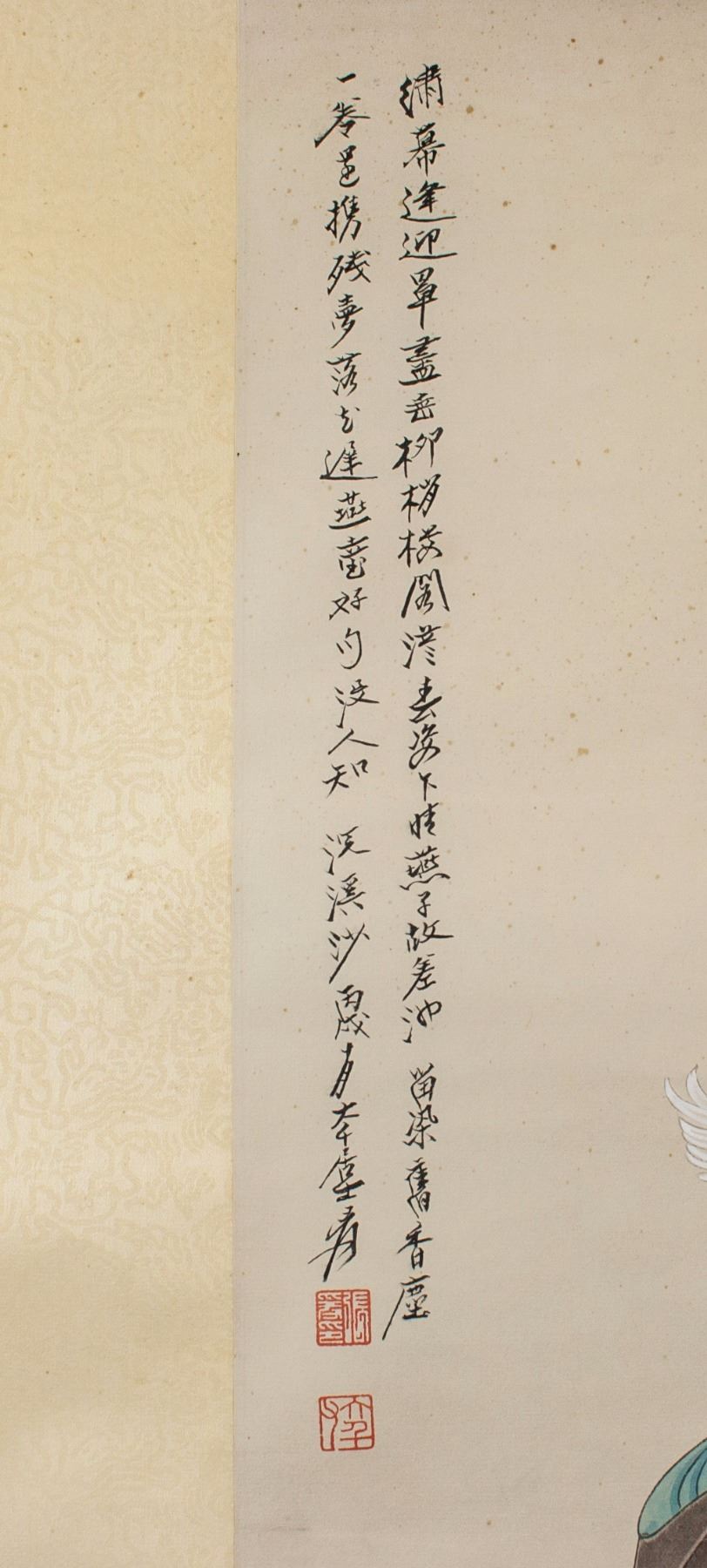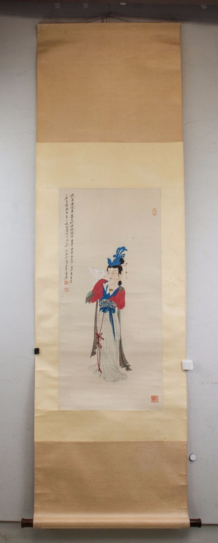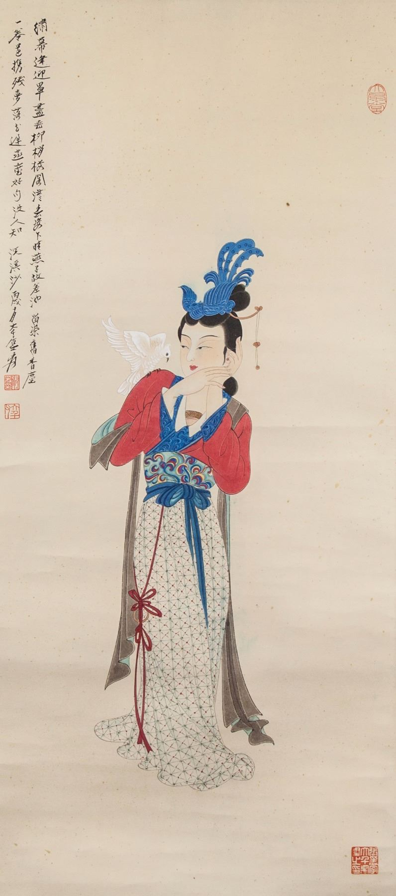 Painting of beauties; Chinese ink and watercolour on paper; hanging scroll; signed Zhang Daqian (1899-1983); inscribed with 4 artist seals; 91 cm x 41 cm